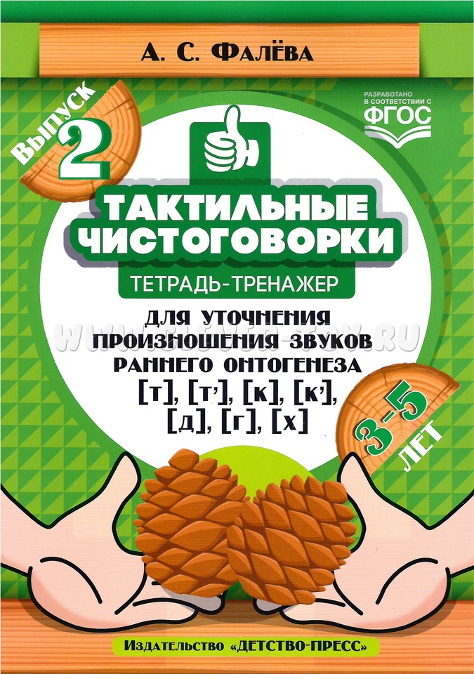 Тактильные чистоговорки: тетрадь-тренажер для уточнения произношения звуков раннего онтогенеза [т], [т’], [к], [к’], [д], [г], [х]. Выпуск 2. (3—5 лет). ФГОС.