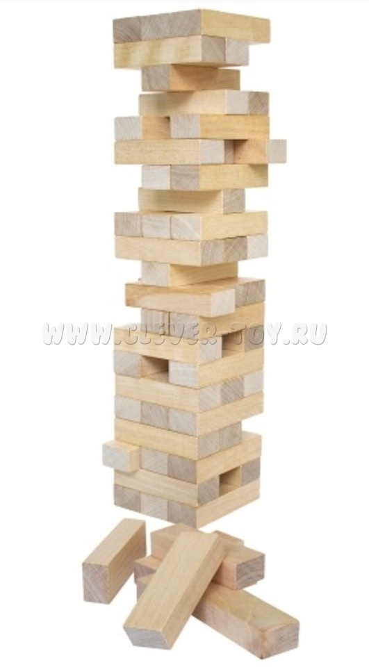 В начале игры нужно сложить башню из 18 уровней по три бруска в каждом, так, чтобы бруски соседних уровней лежали в разных направлениях. После того, как башня готова, игроки по очереди вытаскивают из неё по одному брусочку и перемещают его на самый верхний уровень, тем самым, продолжая строительство башни и постепенно уменьшая ее устойчивость.