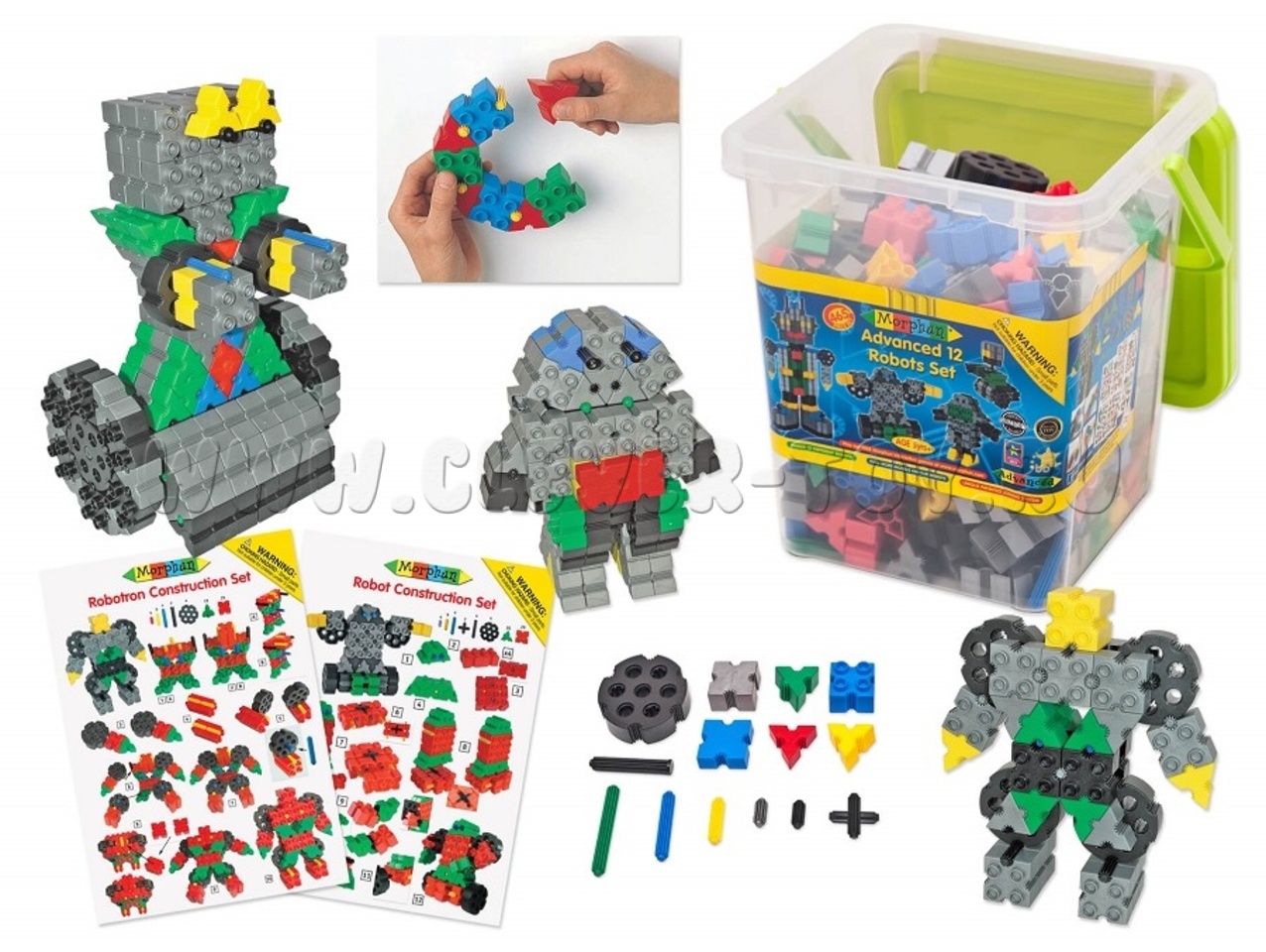 - Конструктор Morphun® Advanced 12 Robot Set «Роботы» упакован в пластиковый короб для хранения комплектующих, с закрывающейся на фиксаторы крышкой и ручкой для переноски.