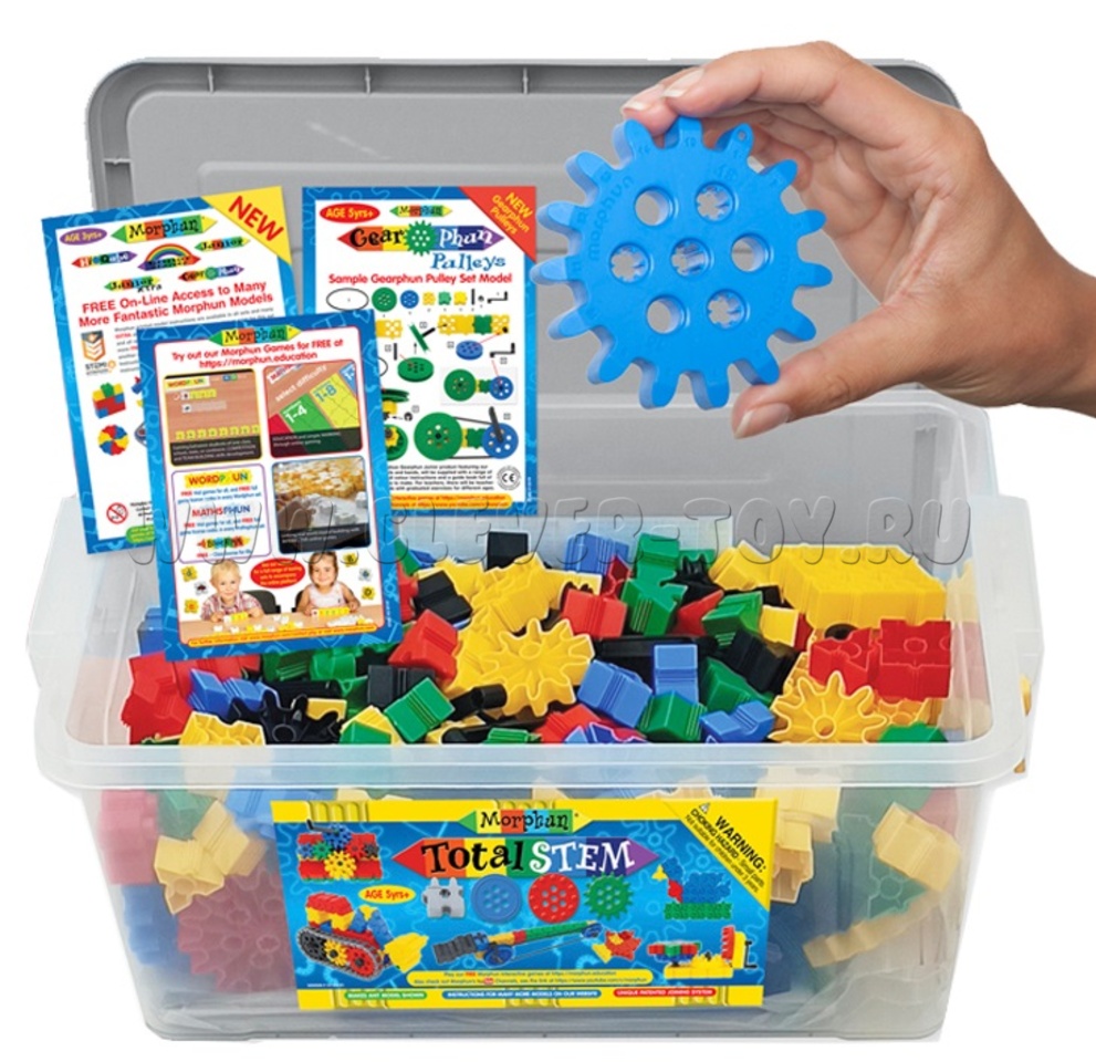 Конструктор Morphun Total STEM 400 деталей это прекрасное практическое пособие для ознакомления детей с наиболее распространенными в инженерном деле механическими передачами, их свойствами и особенностями, понятием передаточное отношение, скорость вращения.