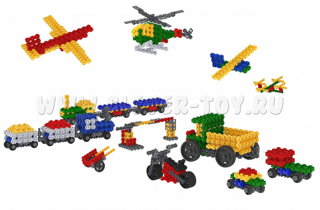 Комплект предназначен для творческого конструирования с детьми 5–7 лет и позволяет собрать 28 моделей машин и механизмов.