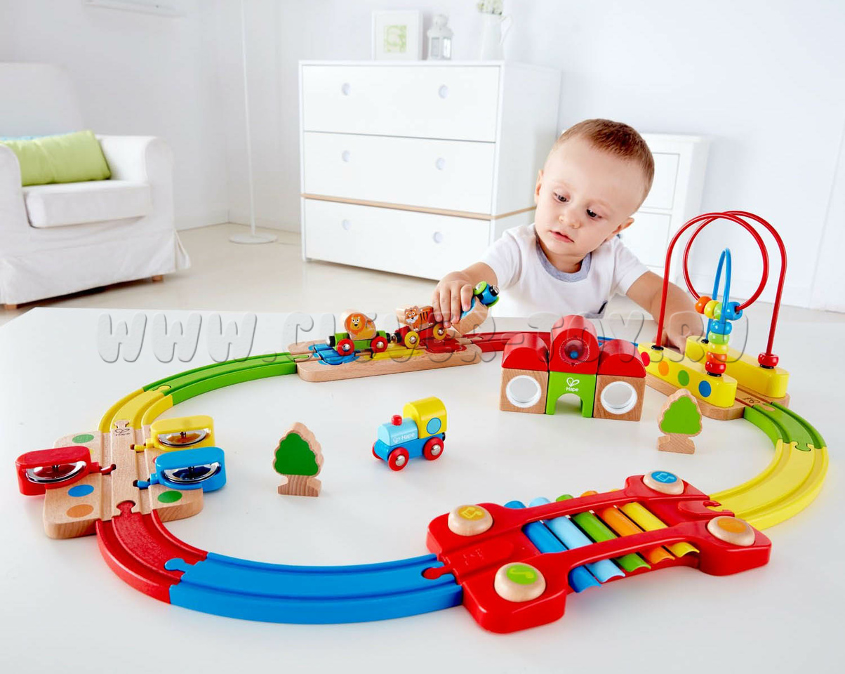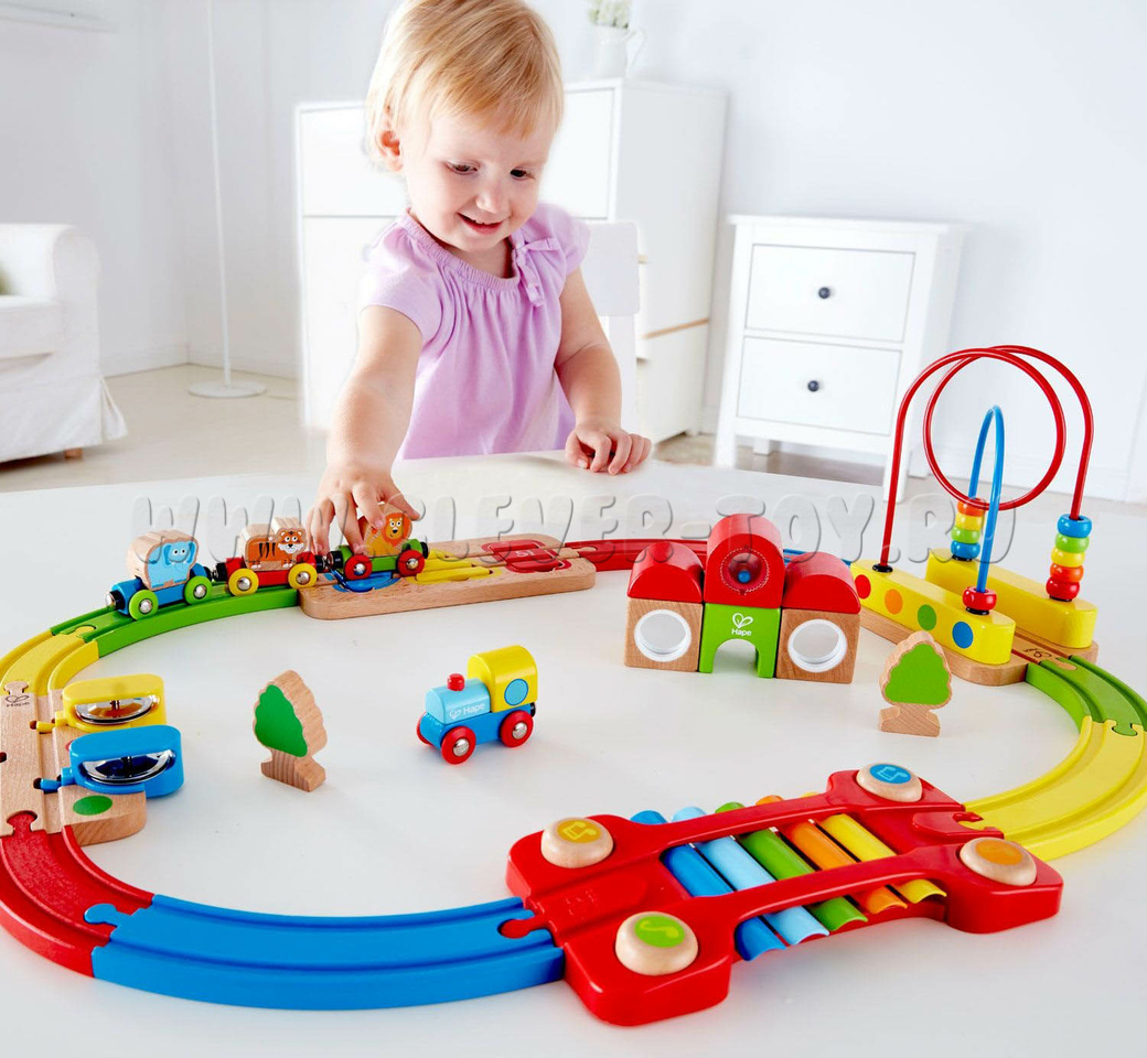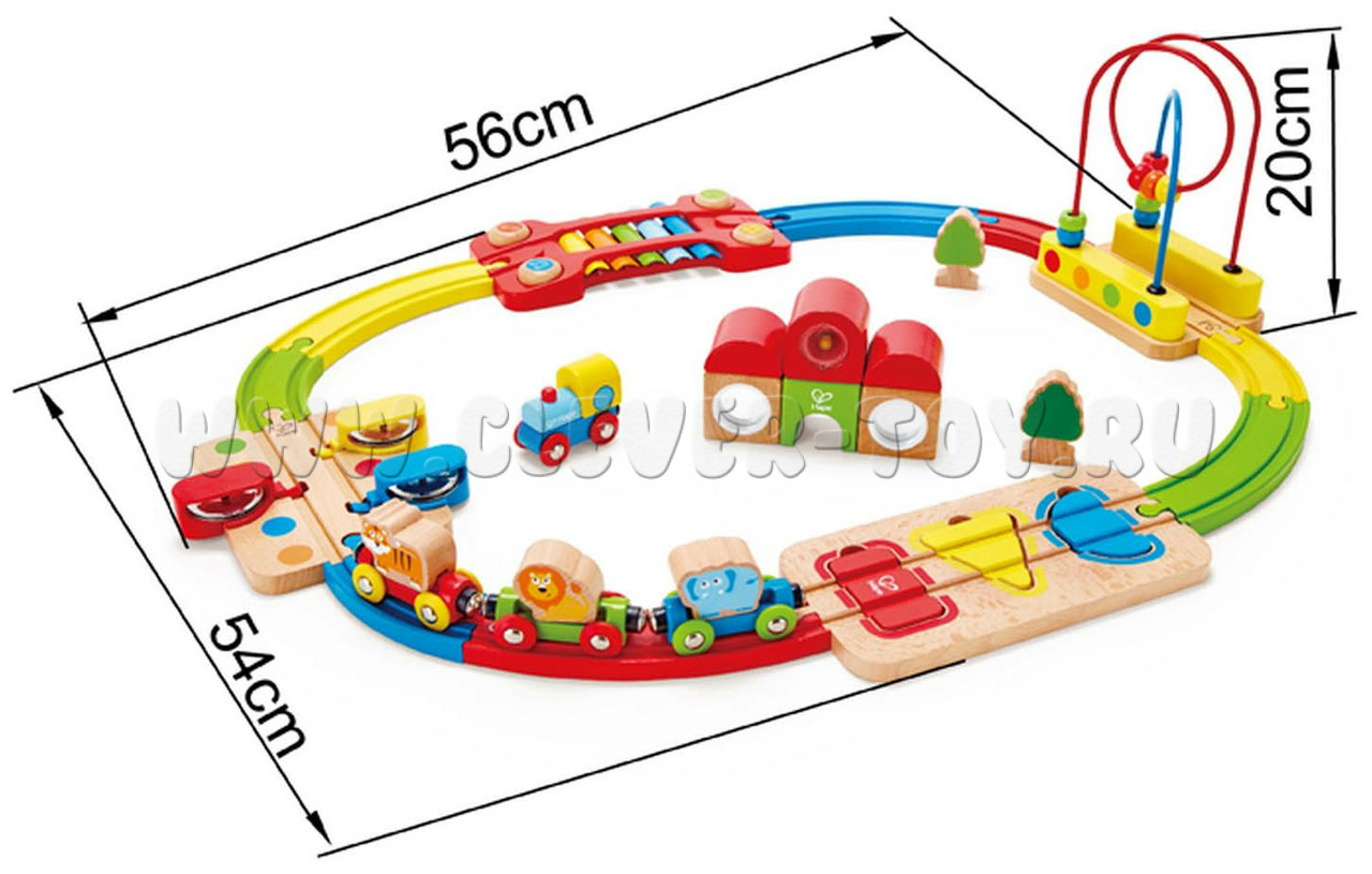 Железнодорожный набор Радуга от Hape растет вместе с вашим ребенком, и совместим с большинством других деревянных рельсовых комплектов из других конструкторов Hape.