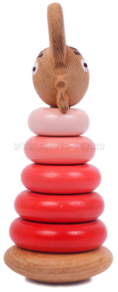 Пирамида "Петушок" состоит из 5 колец разных оттенков красного, головы петушка и стержня с основанием.