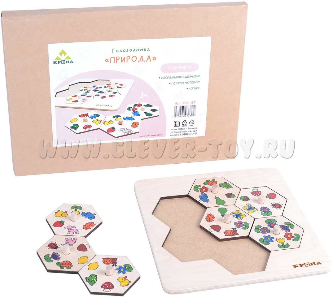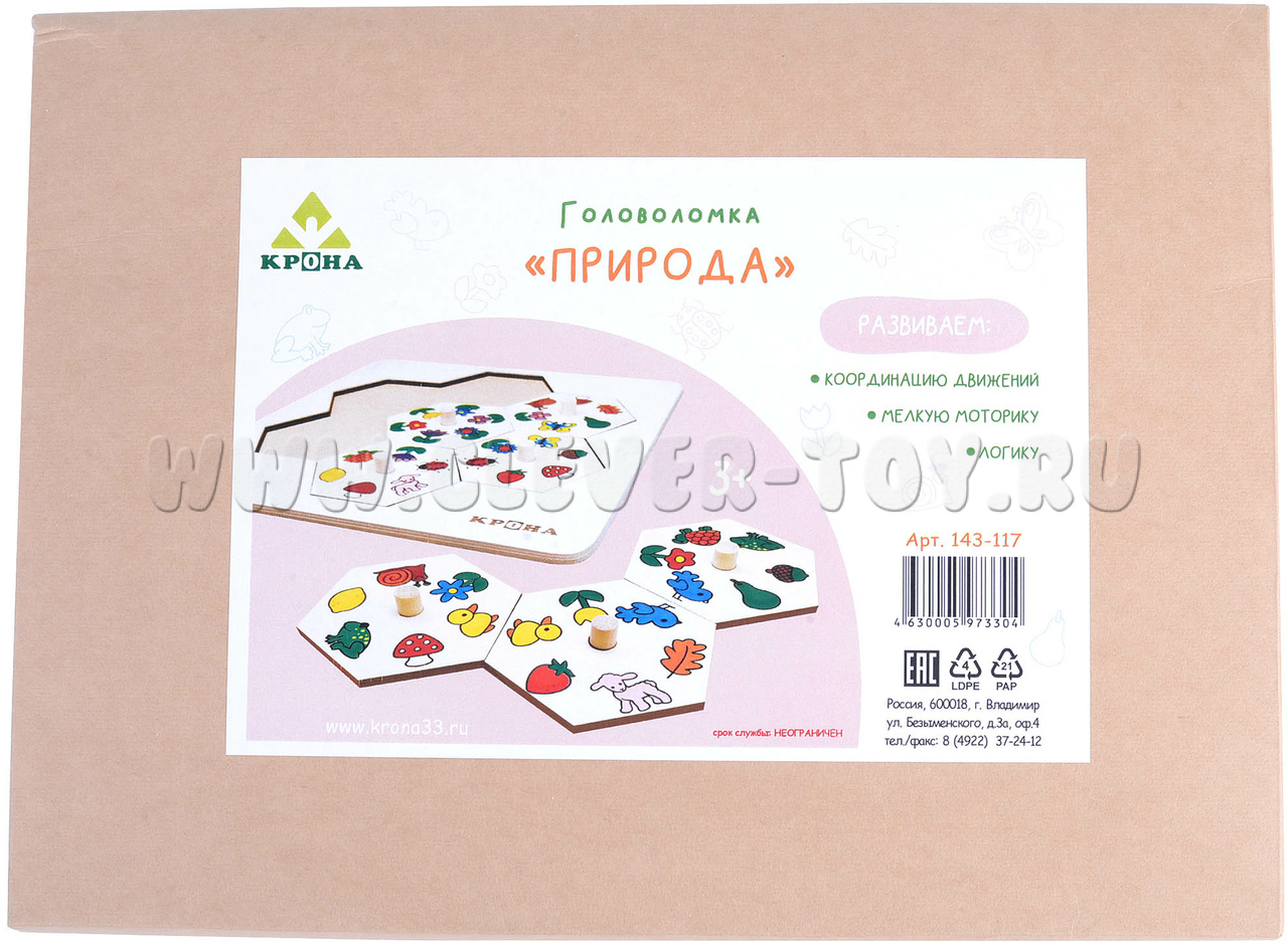 Игра-головоломка "Природа" изготовлена из берёзовой фанеры, детали хорошо отшлифованы. При игре детали не расслаиваются, не деформируются и не ломаются, так что выдержат много сборок и разборок. Кроме того, это экологически чистая продукция, не способная нанести вреда ребенку и окружающей среде.