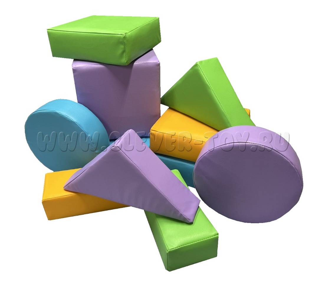 Комплектация: куб 30*30*30 - 1шт. прямоугольник 60*30*10 - 1шт. круг D30*H10 - 2шт. прямоугольник 30*15*10 - 2шт. треугольник 30*30*10 - 2шт. квадрат 30*30*10 - 2шт.