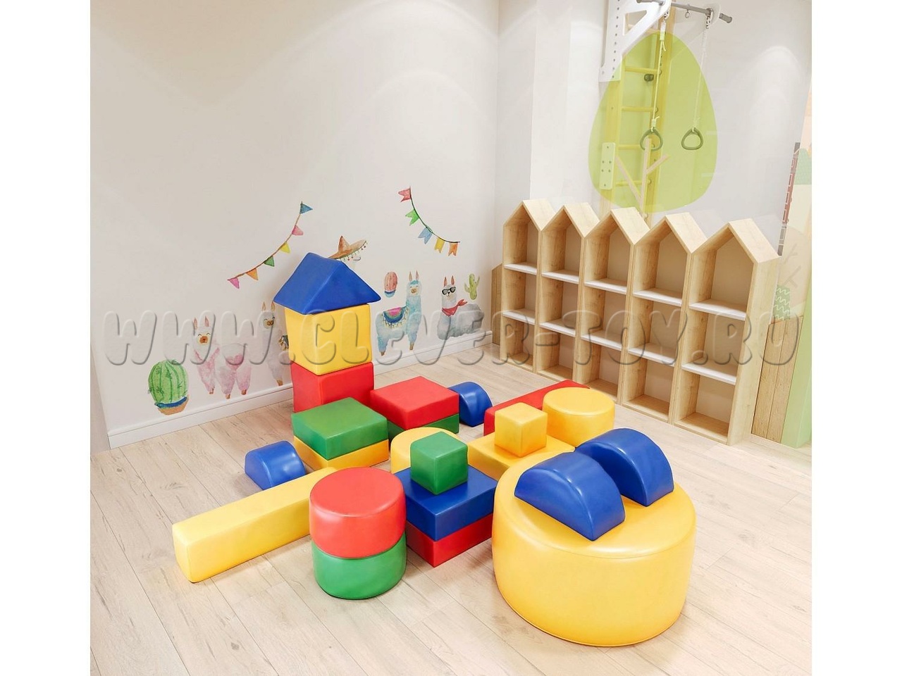 В комплекте: кубик, цилиндр, треугольник, прямоугольник, брус, полуцилиндр.