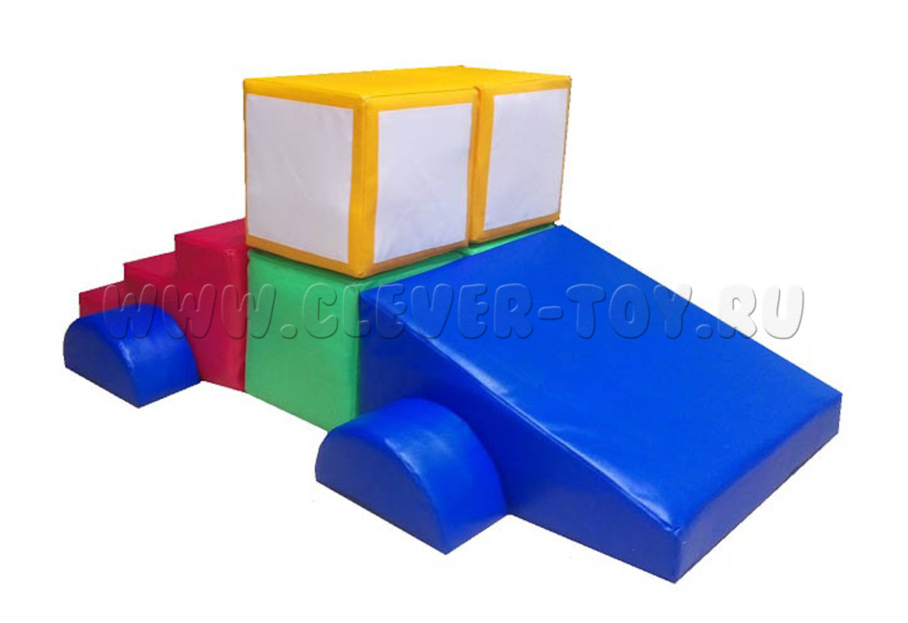 Комплектация: 10 предметов куб - 24*24*24 – 4 шт. полуцилиндр – 25*12,5*12,5 – 4 шт. горка – 48*48*24 – 1 шт. ступень - 48*48*24 – 1 шт.