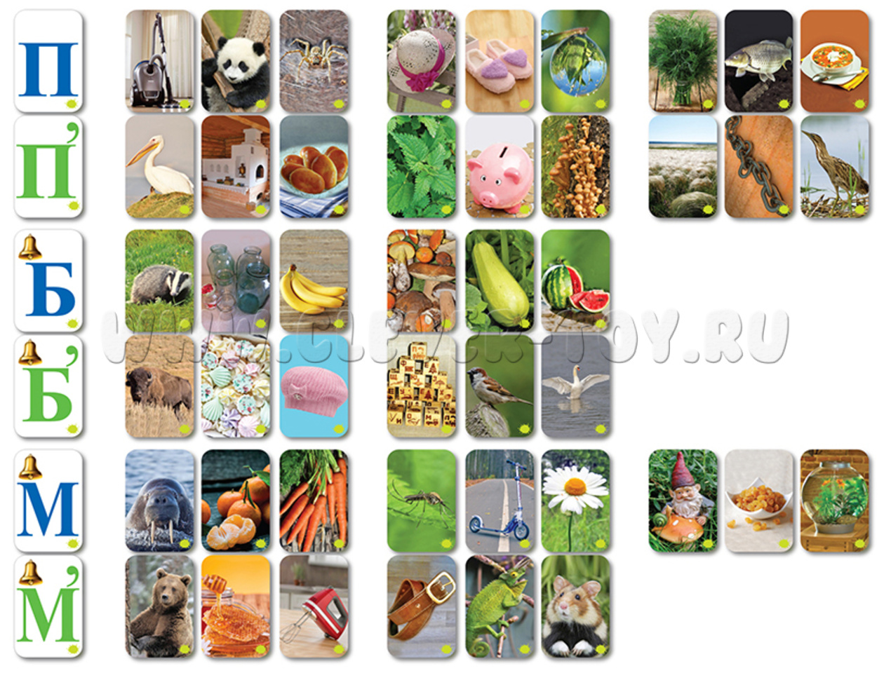 П, Б, М, Пылесос, Панда, Паук, шляПа, таПки, каПля, укроП, карП, суП, Барсук, Банки, Бананы, гриБы, каБачок, арБуз, Морж, Мандарин, Морковь, коМар, саМокат, роМашка, гноМ, изюМ, аквариуМ, Пеликан, Печка, Пирожки, краПива, коПилка, оПята, стеПь, цеПь, выПь, Бизон, Безе, Берет, куБики, вороБей, леБедь, Медведь, Мёд, Миксер, реМень, хаМелеон, хоМяк.