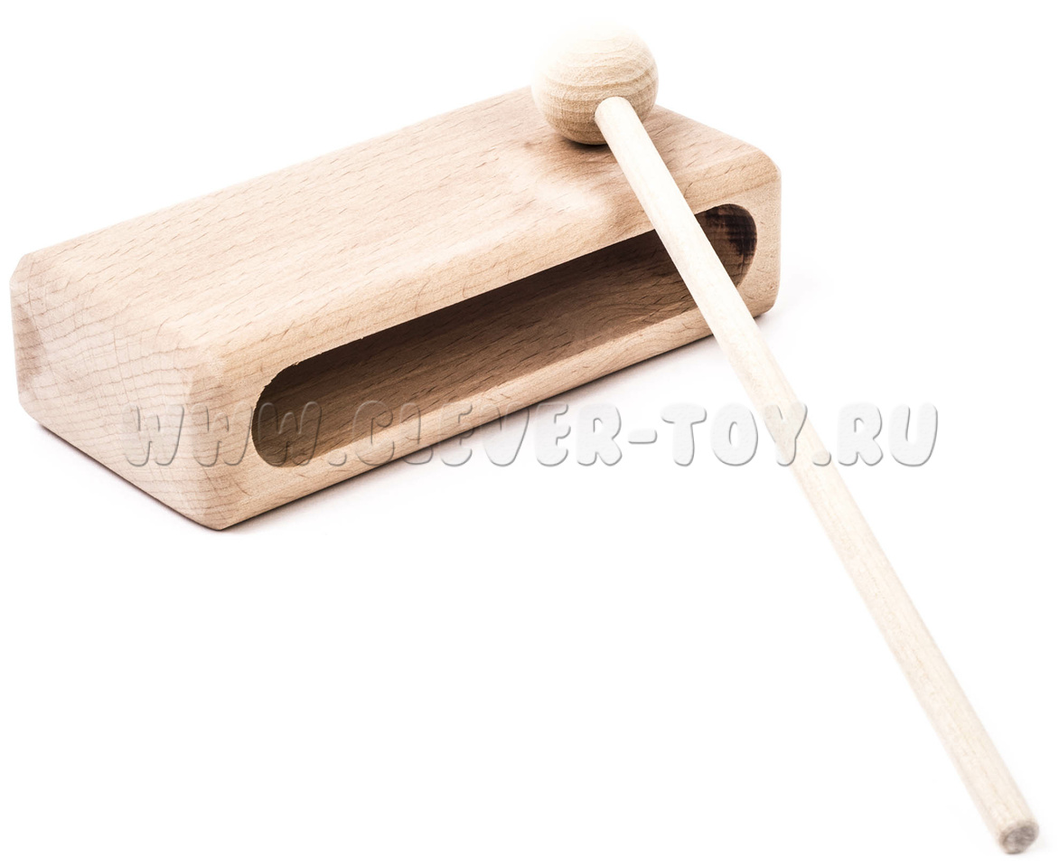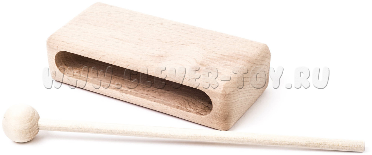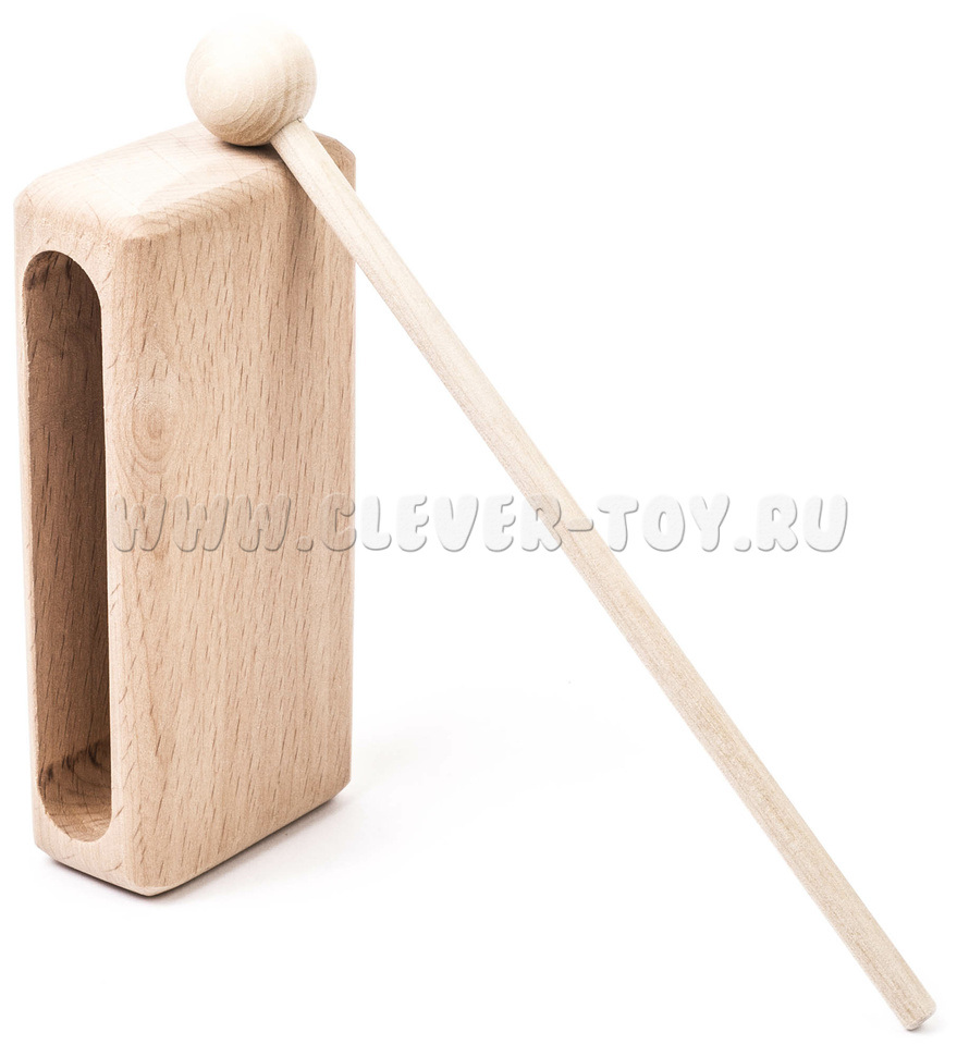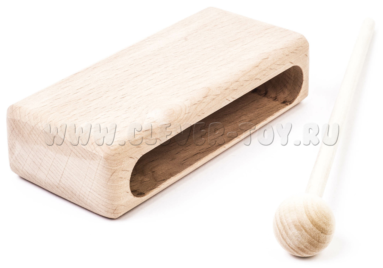 Представляет собой деревянный брус 30х50х100 мм. Музыкальный инструмент комплектуется ударной палочкой. Материал: бук.
