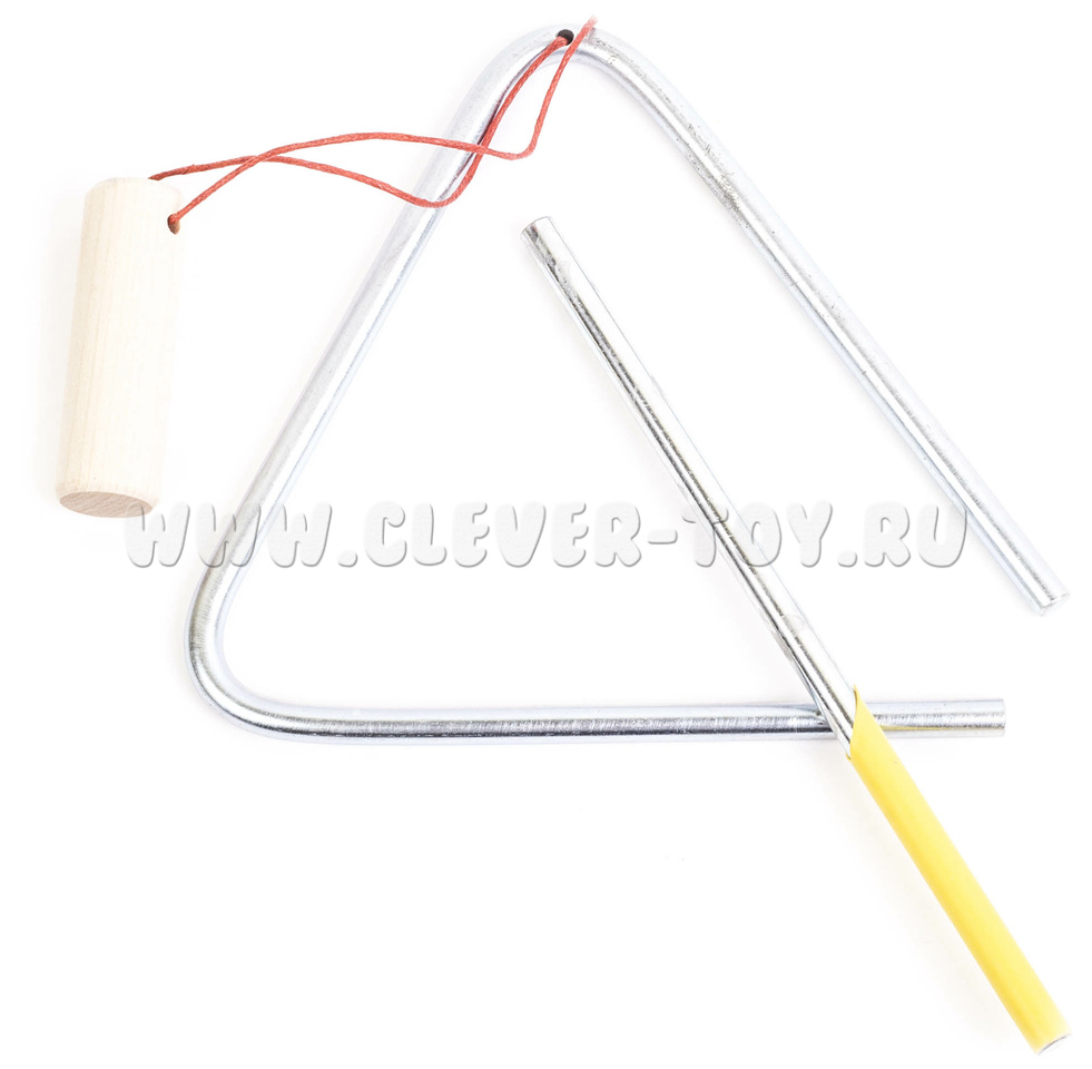 Треугольник выполнен из стали диаметром 6мм, длина стороны - 12см. Гальваническое покрытие не ухудшает качество звука и не разрушается при механическом воздействии. Ударная палочка из нержавеющей стали.