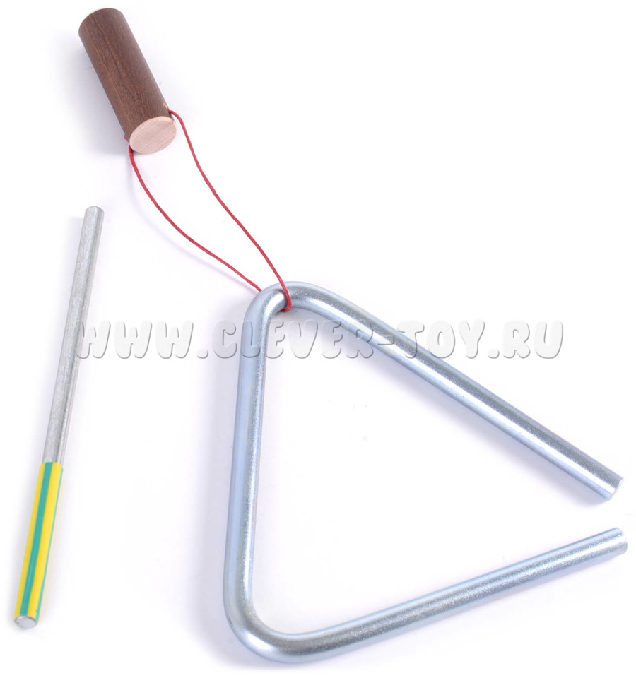 Треугольник выполнен из стали диаметром 8мм, длина стороны - 12см. Гальваническое покрытие не ухудшает качество звука и не разрушается при механическом воздействии. Ударная палочка из нержавеющей стали.