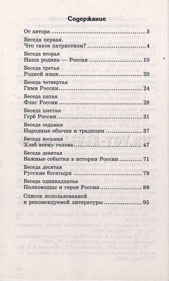 Книга посвящена нравственно-патриотическому воспитанию детей, построена в виде бесед, из которых дети узнают о том, что такое патриотизм, Отечество, Отчизна, малая родина, а также о государственных символах России, ее природе, важных исторических событиях, выдающихся людях, прославивших нашу страну, народных традициях и обрядах.