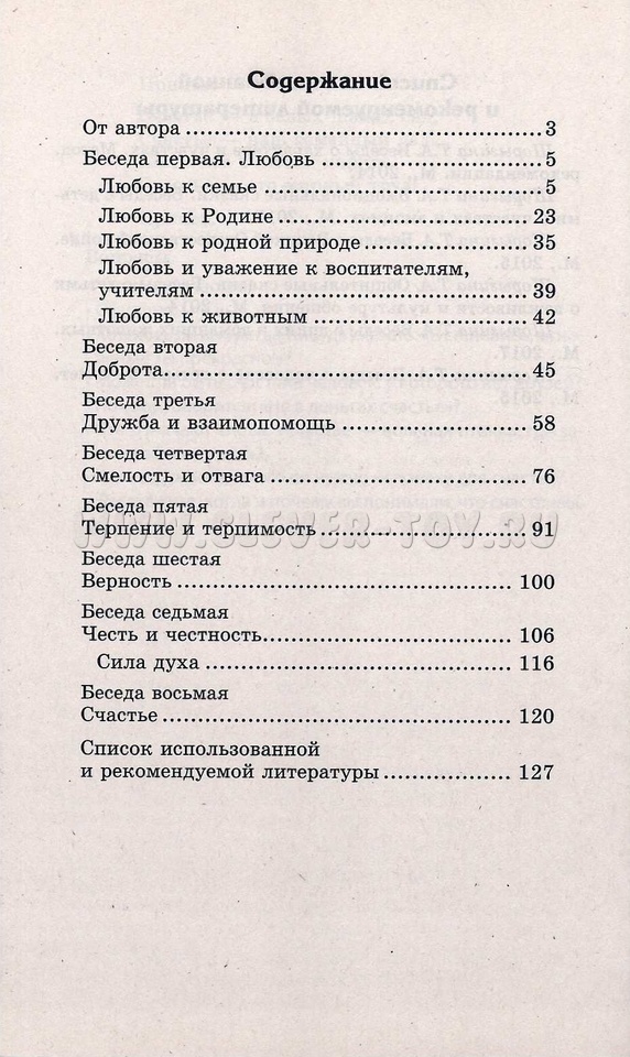 В книге собраны беседы, сказки, рассказы, стихи, загадки, тесты, посвященные таким нравственным понятиям, как любовь и доброта, дружба и взаимовыручка, верность, отвага и смелость, честь и честность, сила духа и счастье.