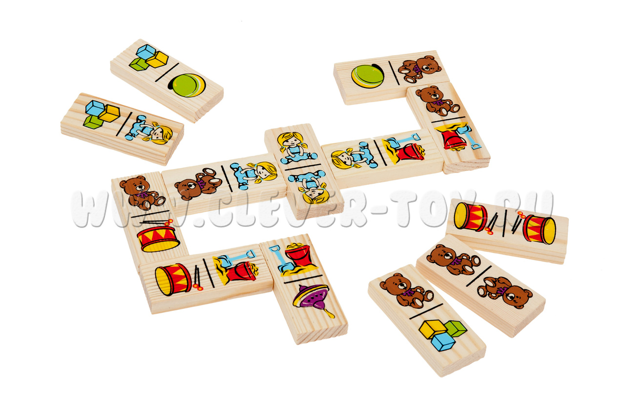 В данном домино изображены игрушки, знакомые даже малышам, так что играть можно самым маленьким.