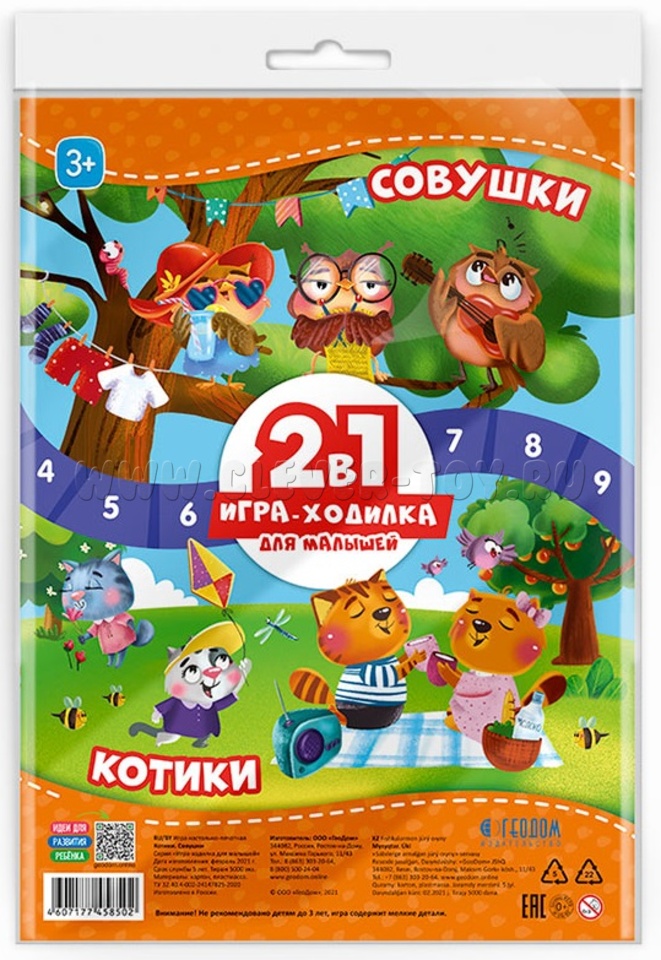 Игра-ходилка с фишками для малышей 2в1 "Котики+Совушки"