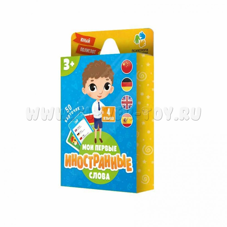 Универсальная карточная игра на 50 обучающих карточек на 4-х иностранных языках:английский, немецкий, китайский, испанский. Набор помогает изучить слова, которые малыш осваивает в первые годы жизни. А наличие упрощённой русской транскрипции не потребует от родителей специальной языковой подготовки. Слова можно запоминать в игровой форме: называйте их на скорость, составляйте словосочетания, изучайте и играйте!