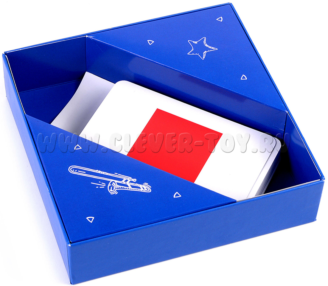 В набор входит инструкция с правилами игры и 32 карточки с изображениями 8 геометрических фигур разных цветов.