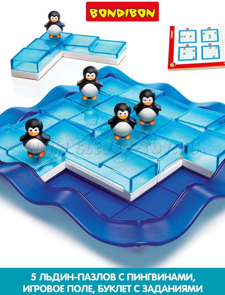 Распологайте все детали-льдины так, чтобы пингвины оказались на местах согласно заданиям. У каждой задачи только одно решение.