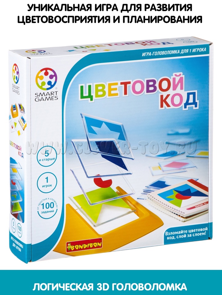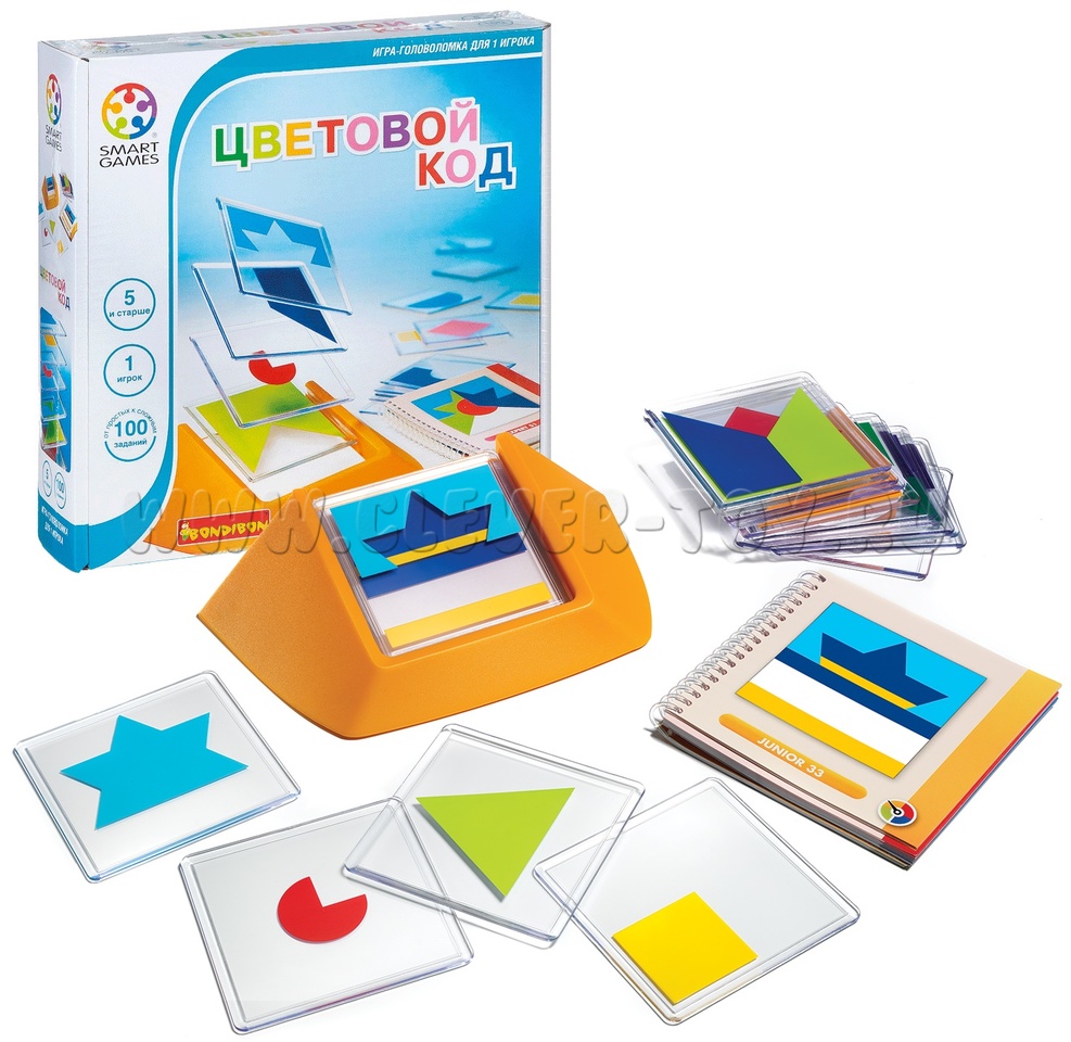 Логическая настольная игра «Цветовой код» - это особая комбинация геометрических фигур разного цвета наложенных друг на друга. Головоломка предлагает 100 вариантов кода, для всех уровней подготовки от новичка до мастера. Развивающая игра рассчитана на детей от 5 лет, но и взрослому игроку будет интересно.