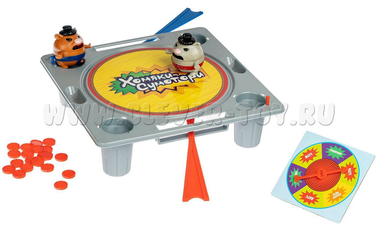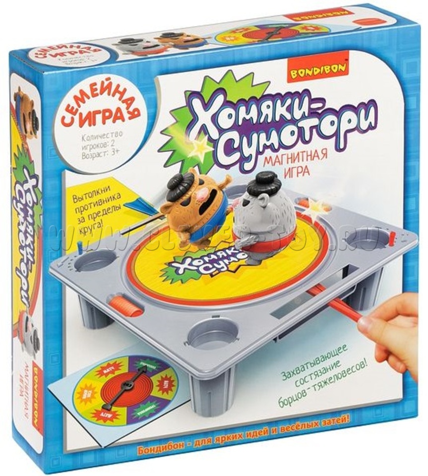 Семейная настольная игра для мастеров сумо. При помощи магнитной палочки маневрируйте своим хомяком так, чтобы боец противника вылетел с ринга. Количество раундов обговаривается заранее. Существует режим тренировки. А еще хомяков можно откармливать!