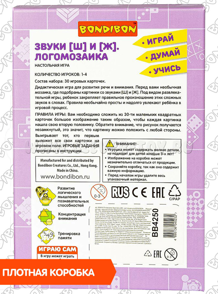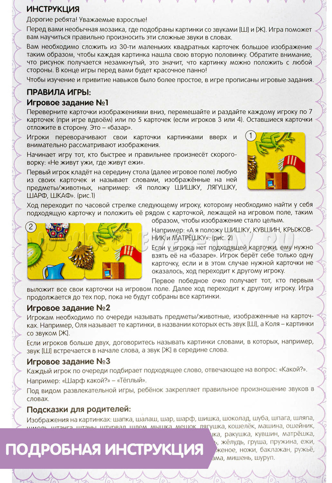 Настольная игра "Логомозаика. Звуки [Ш] и [Ж]" из серии "Играй Думай Учись".