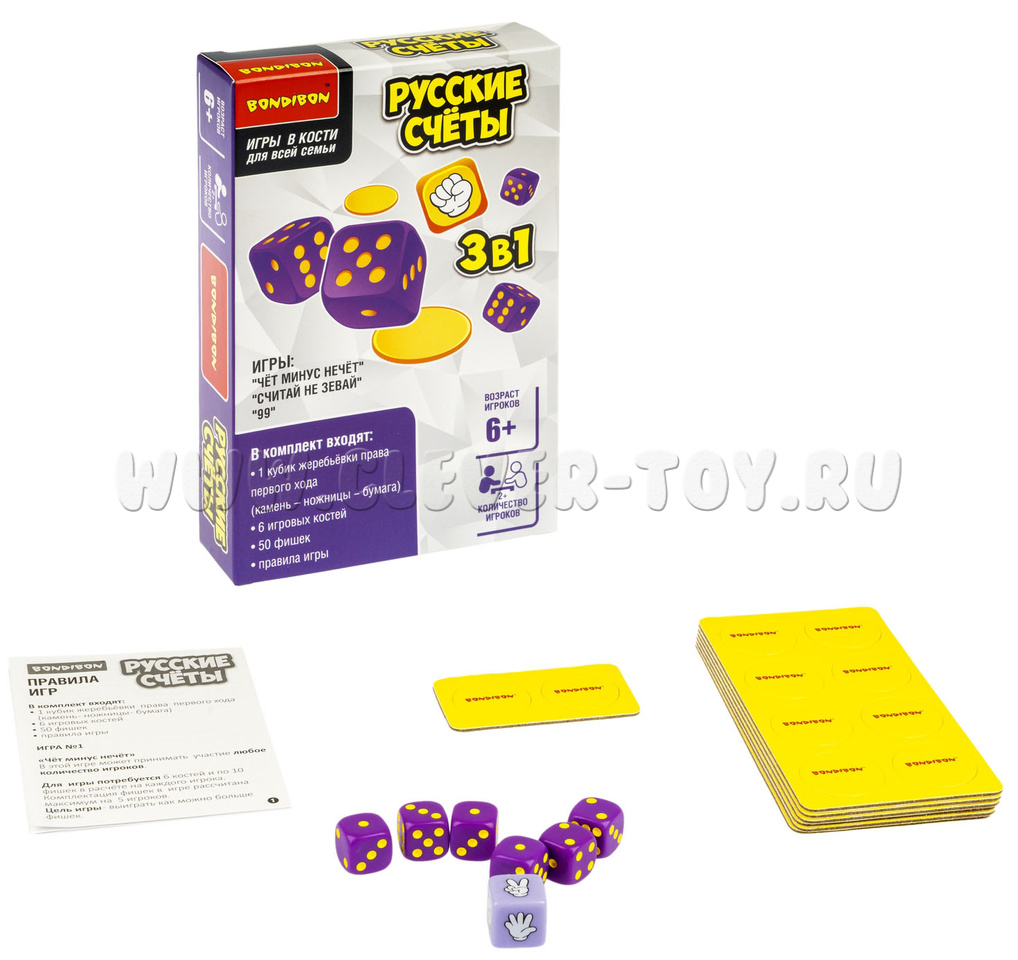 Настольная семейная игра в кости 3в1 "Русские счёты"