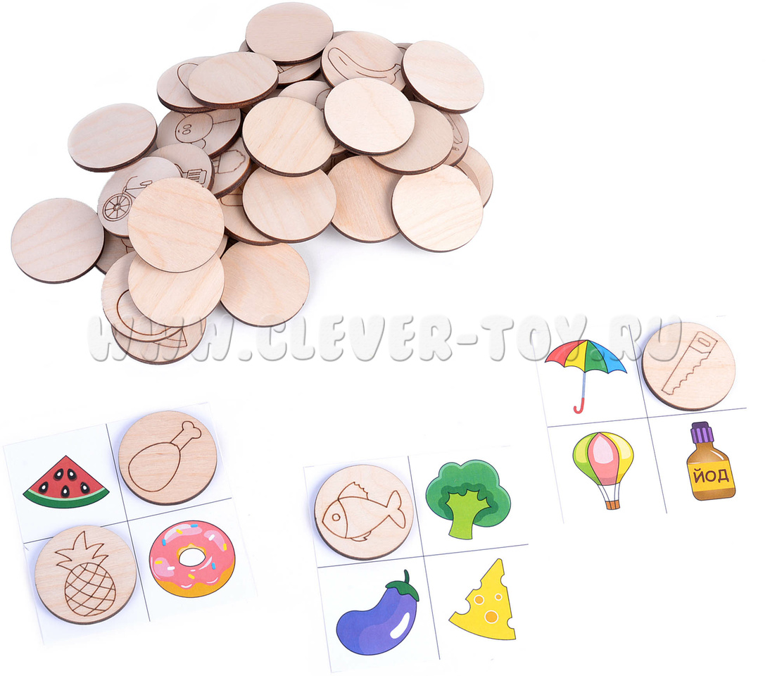 Фишки изготовлены из дерева и безопасны для здоровья малыша.