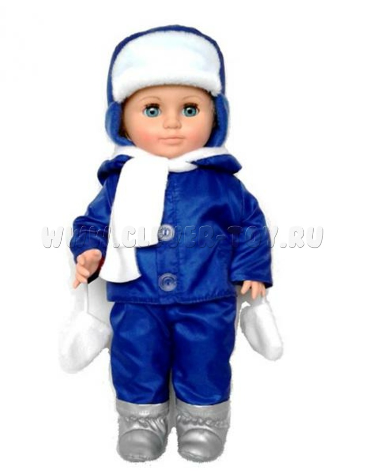 Кукла выполнена в виде голубоглазого малыша, высотой 43 сантиметра с разнообразным гардеробом на все сезоны. Куртки, шапочки, ветровки имеют разные цвета, фактуру и виды застёжек, с которыми детям будет интересно познакомиться.