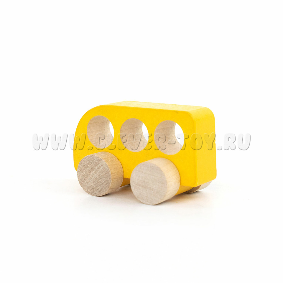 Деревянная машинка-каталка "Томик" желтая для самых маленьких ребят, с отверстием для пальчиков.