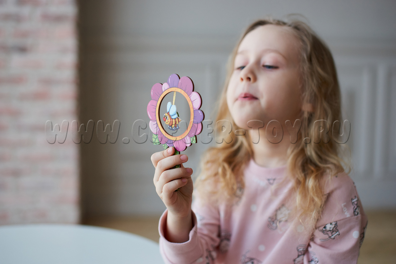 4. Игра "Вертушка". Закрепите один из элементов на основании тренажера. Вспомните, как вертится вертушка от дуновения ветра. Предложите ребенку подуть как можно дольше на закрепленный элемент, как на вертушку.