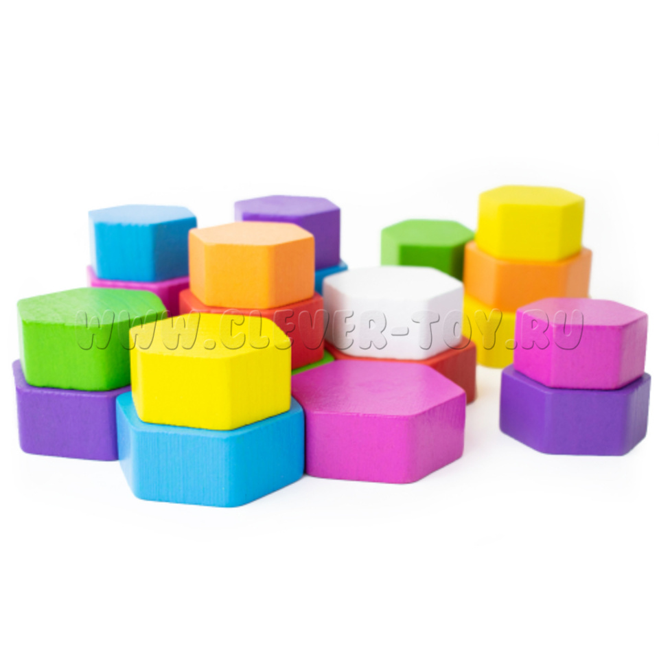 Набор состоит из 25 ярких деревянных деталей.