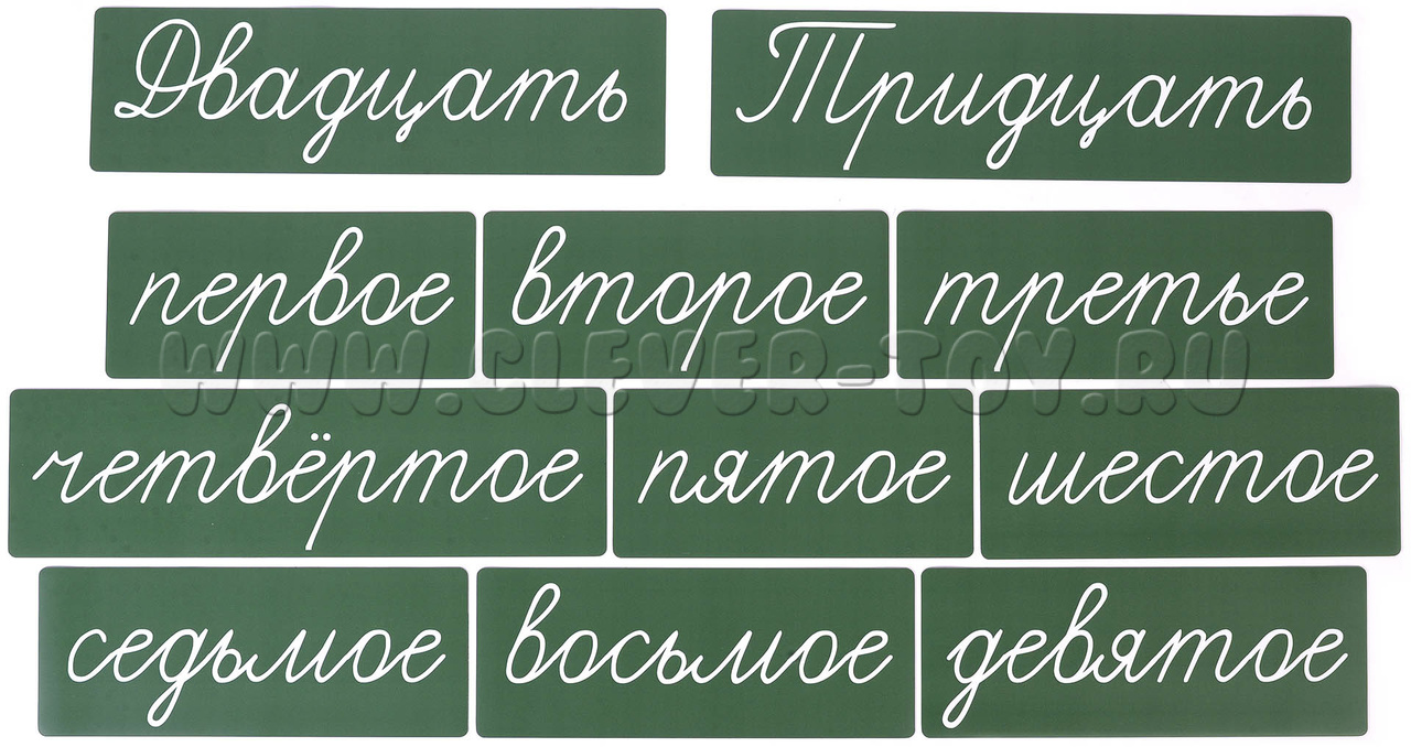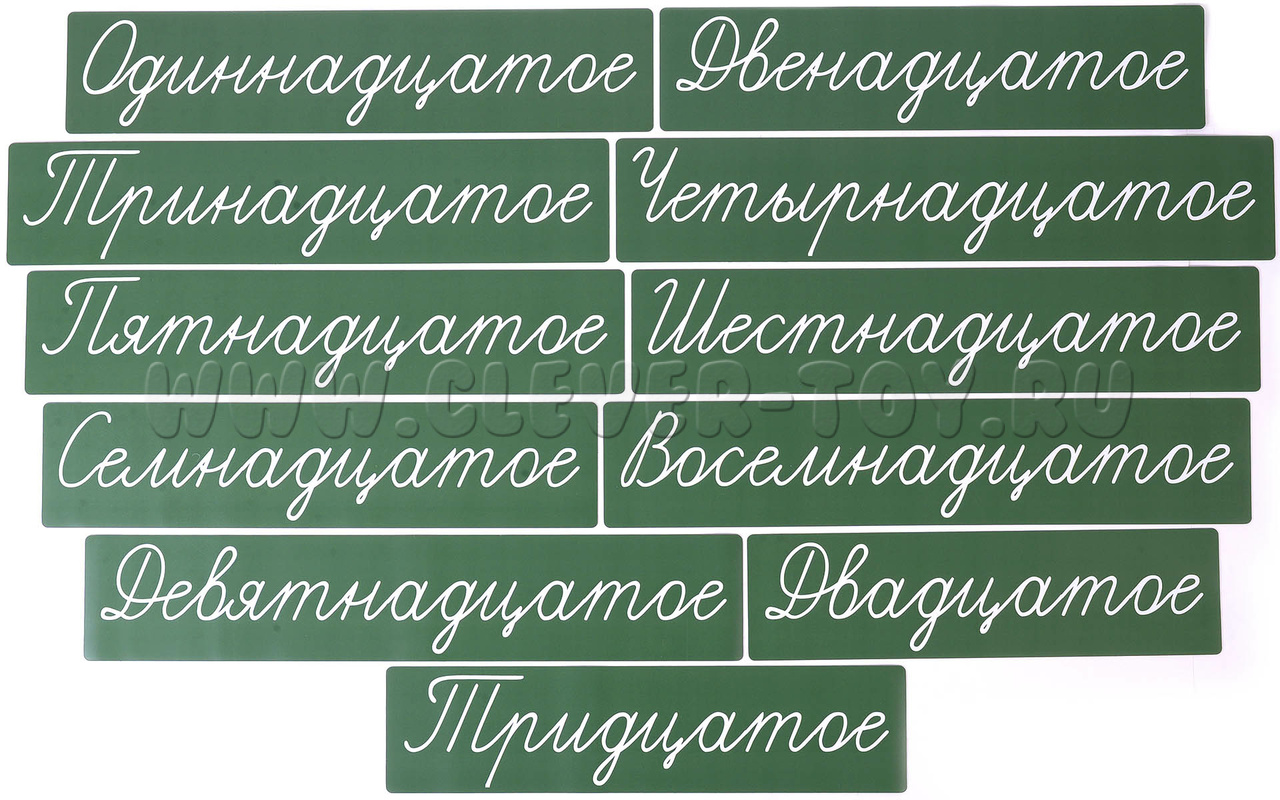 Набор магнитных карточек "Числительные" (прописью, фон зелёный)