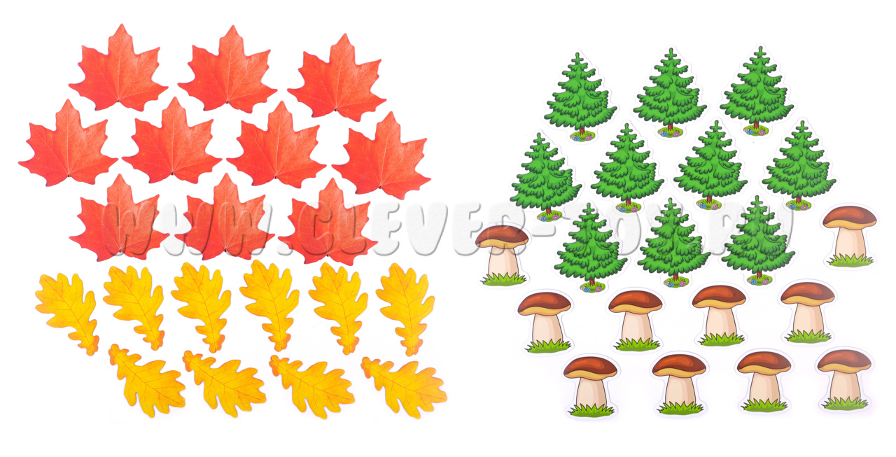 Набор магнитных карточек для устного счёта: листья, ёлочки и грибы*