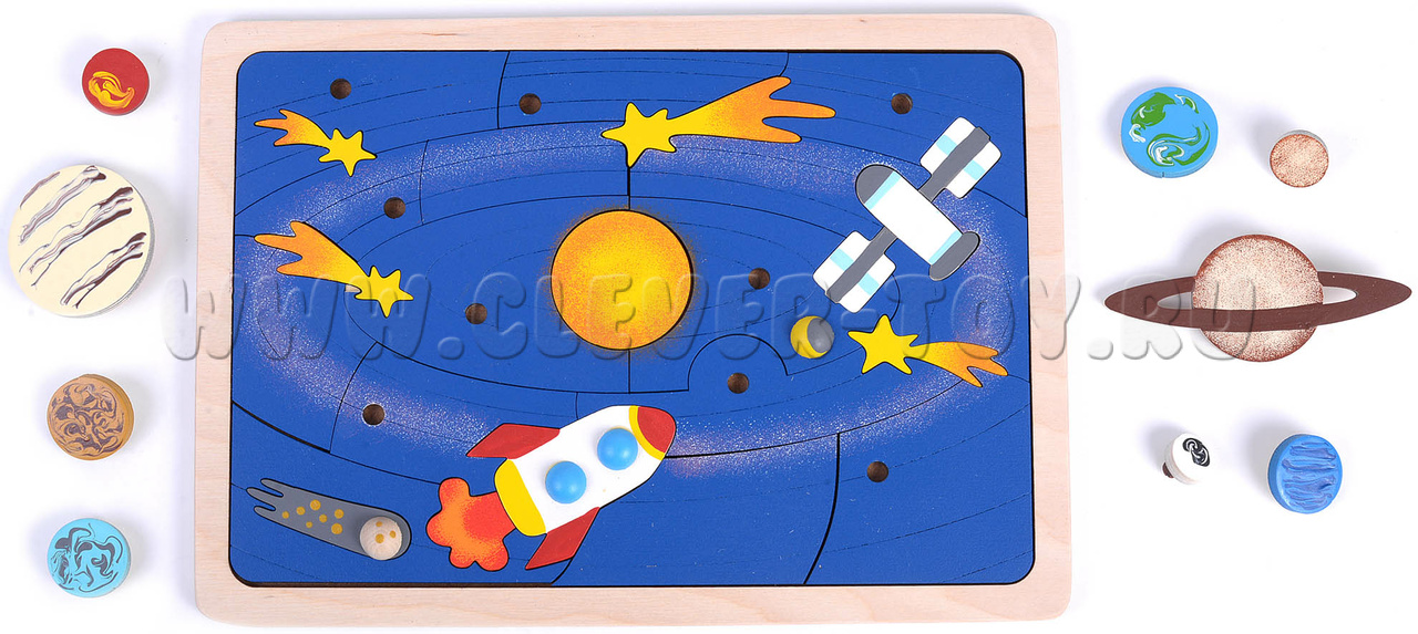 Мозаика «Солнечная система» даёт ребёнку представление об устройстве нашей системы и основах астрономии. С её помощью можно изучать движение планет, их удалённость от Солнца, цвет и размер.