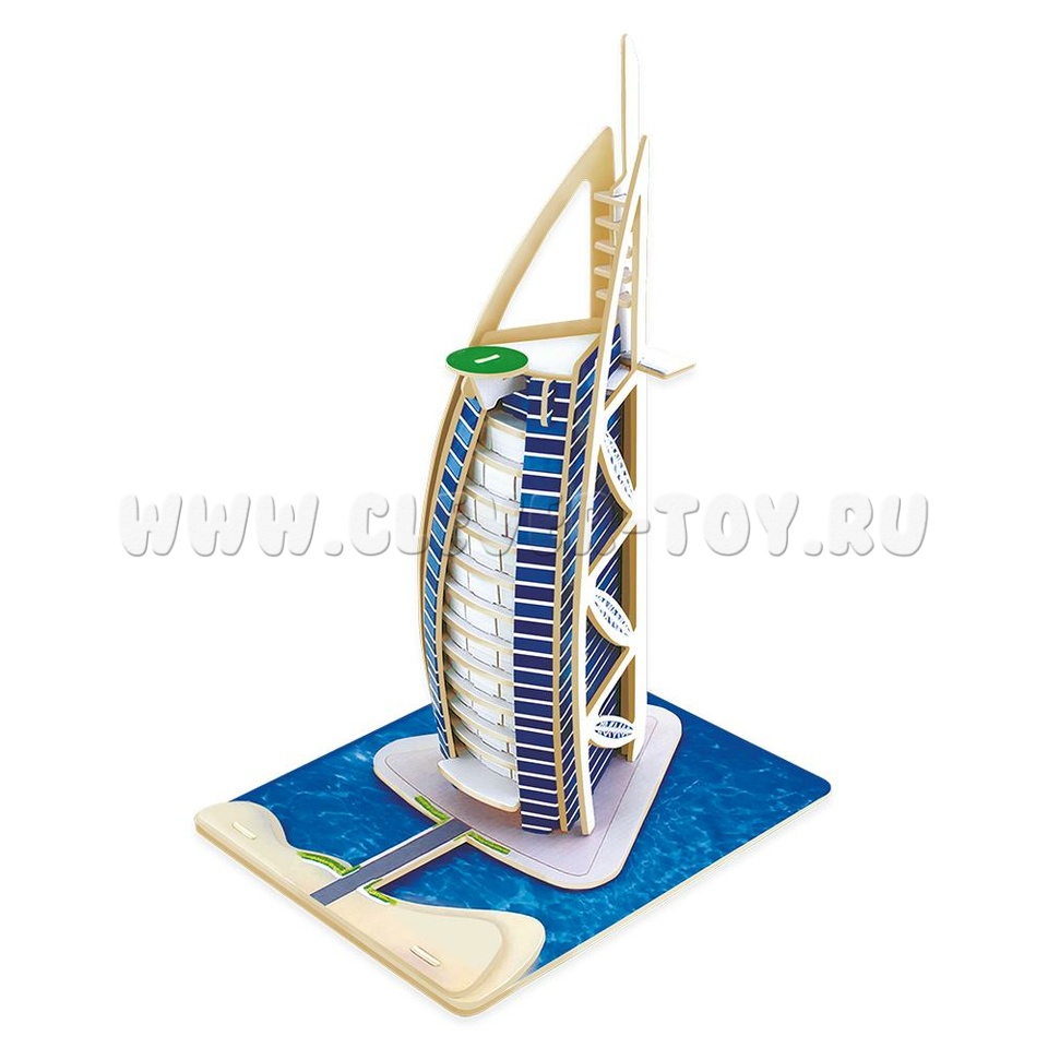 Пазл деревянный 3D. Отель Парус. Серия Достопримечательности мира. Размер 23,5*37,5 см.