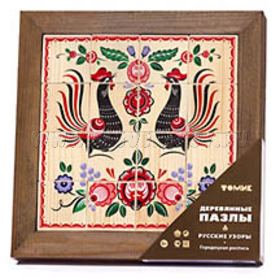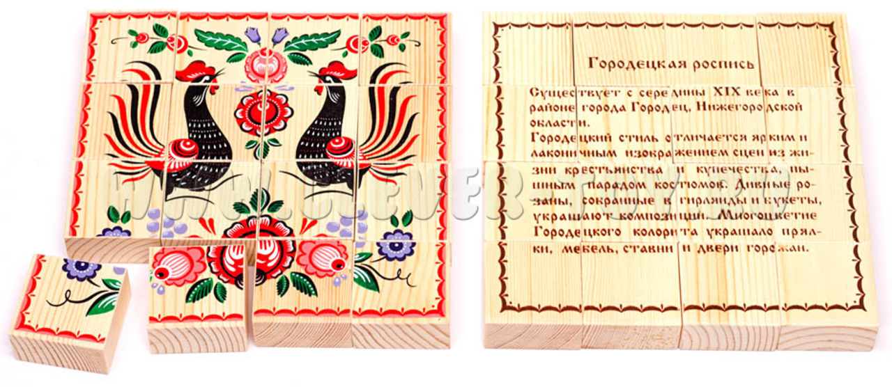 Состоит из 16 деревянных кубиков с изображением узоров.