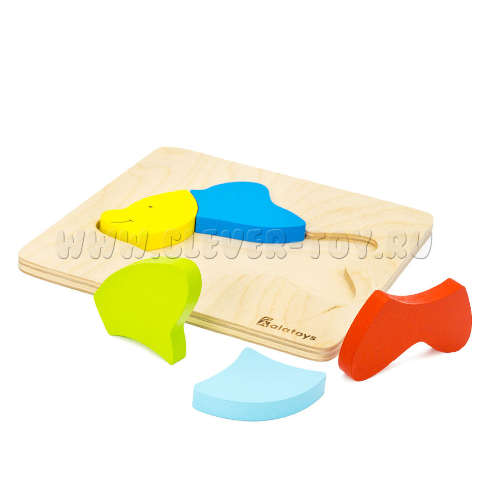 - 5-ти разноцветных деталей, из которых складывается фигурка рыбки (голова, туловище, хвост, 2 плавника), окрашенных в жёлтый, синий, голубой, зелёный и красный цвета.
