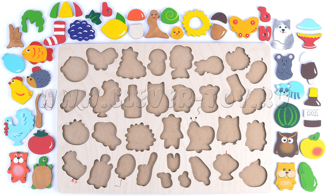 На каждую букву предложена картинка, что делает запоминание более легким и интересным.Собирая и разбирая пазл, ребёнок тренирует образное мышление и моторику.