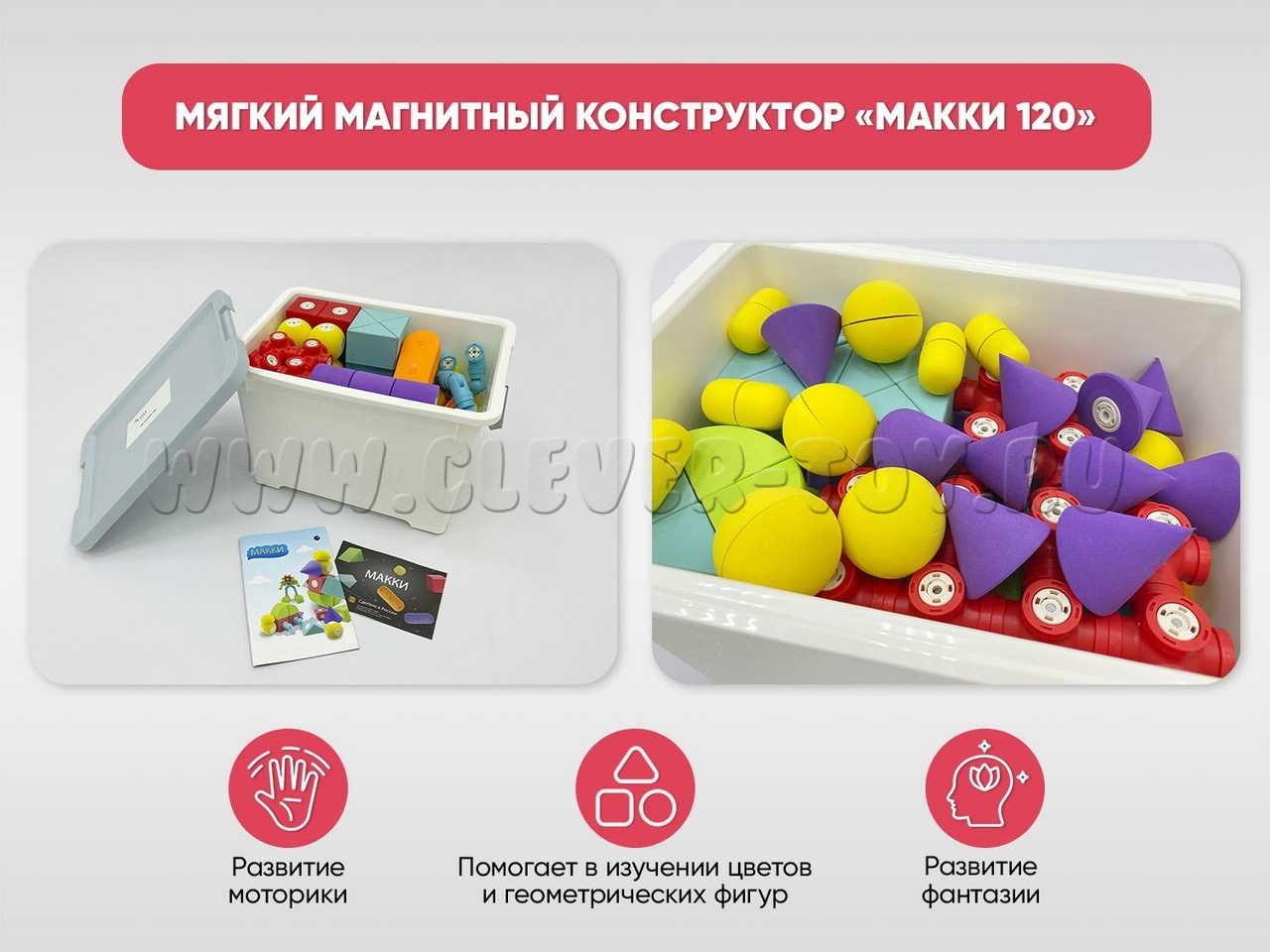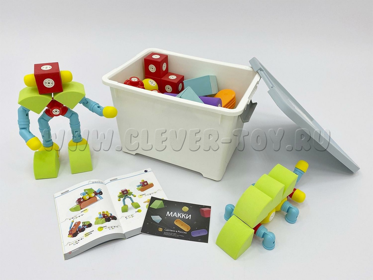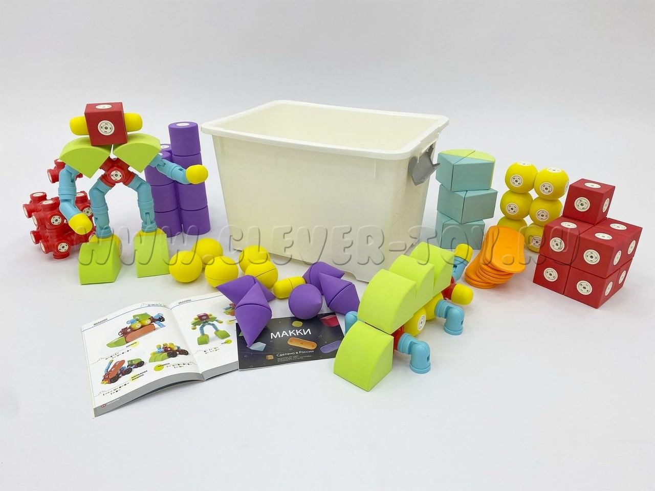 Конструктор "МАККИ 120" - набор цветных магнитных деталей (крупных геометрических фигур с магнитными креплениями), рассчитанный на группу учеников до 16 человек.