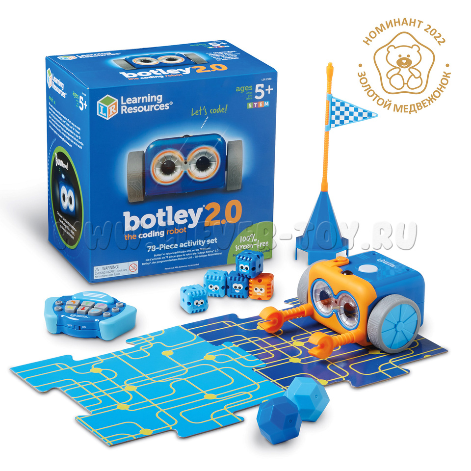 Вторая версия робота Ботли поднимает игры на программирование на новый уровень! Новые классные функции и простота использования, позволяют научить основам программирования детей в возрасте от 5 лет.