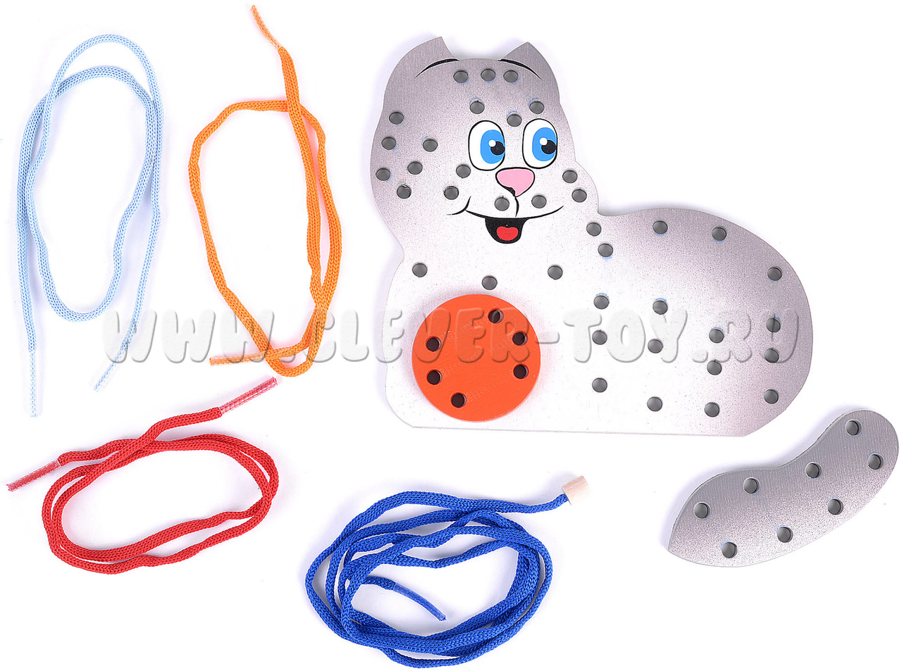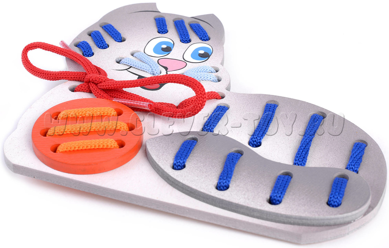 Шнуровка "Мурзик" предназначена для развития мелкой моторики и координации движений в игровой форме. Ребенок узнает, как пришиваются пуговицы и научится делать стежки.