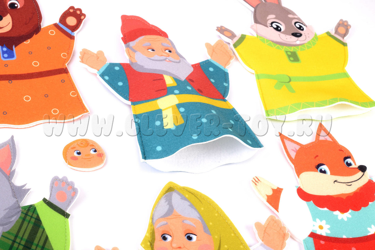 Набор «Колобок» — это комплект для домашних театральных представлений и обучающих игр. С его помощью можно заниматься с детьми разных возрастов индивидуально или в группе. В наборе есть персонажи: дед, баба, колобок, волк, заяц, медведь и лиса. Их используют во время чтения книги, чтобы оживить сказку. Пусть ребёнок самостоятельно показывает, как прыгает зайчик, крадётся лисичка и катится колобок. Размер персонажей: 23 см.