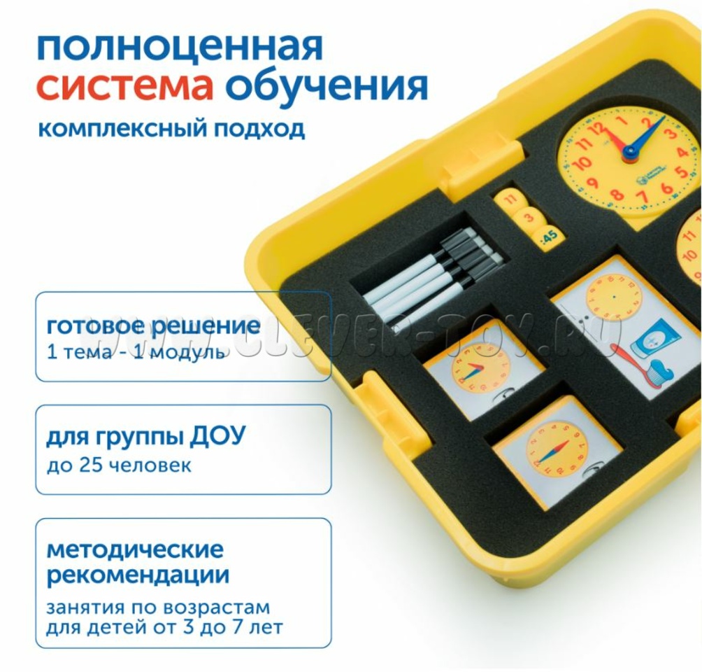 Модуль "Ориентировка во времени" - это инструмент для педагогов детских садов, предназначенный для работы с детьми от трёх до семи лет, который соответствует федеральным государственным образовательным стандартам дошкольного образования. Благодаря модулю дети научатся определять время по часам и событиям, освоят понятия "до", "после", "сейчас", "вчера" и "завтра", разовьют представление о временной последовательности и длительности событий, получат навыки планирования и научатся понимать порядок событий.