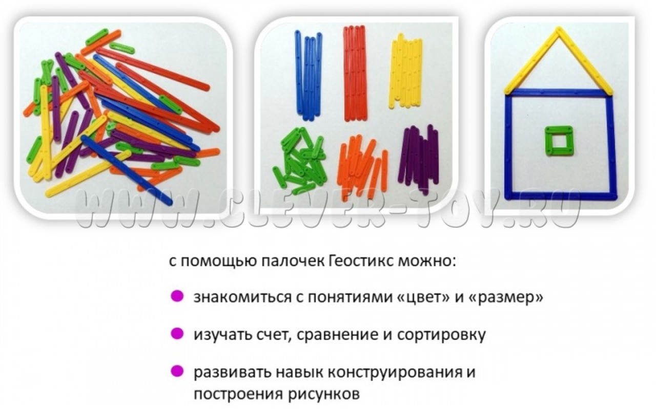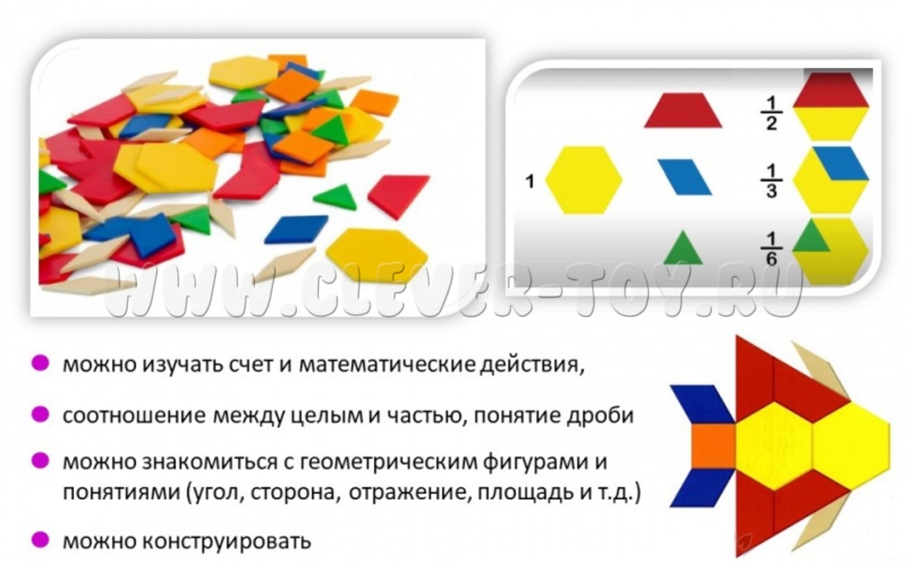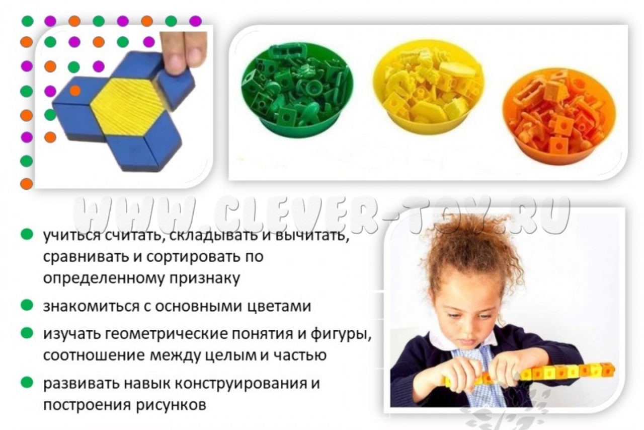С его помощью ребенок учится считать, складывать и вычитать, сравнивать и сортировать по определенному признаку, знакомится с основными цветами, геометрическими фигурами, развивает навык конструирования и построения рисунков.