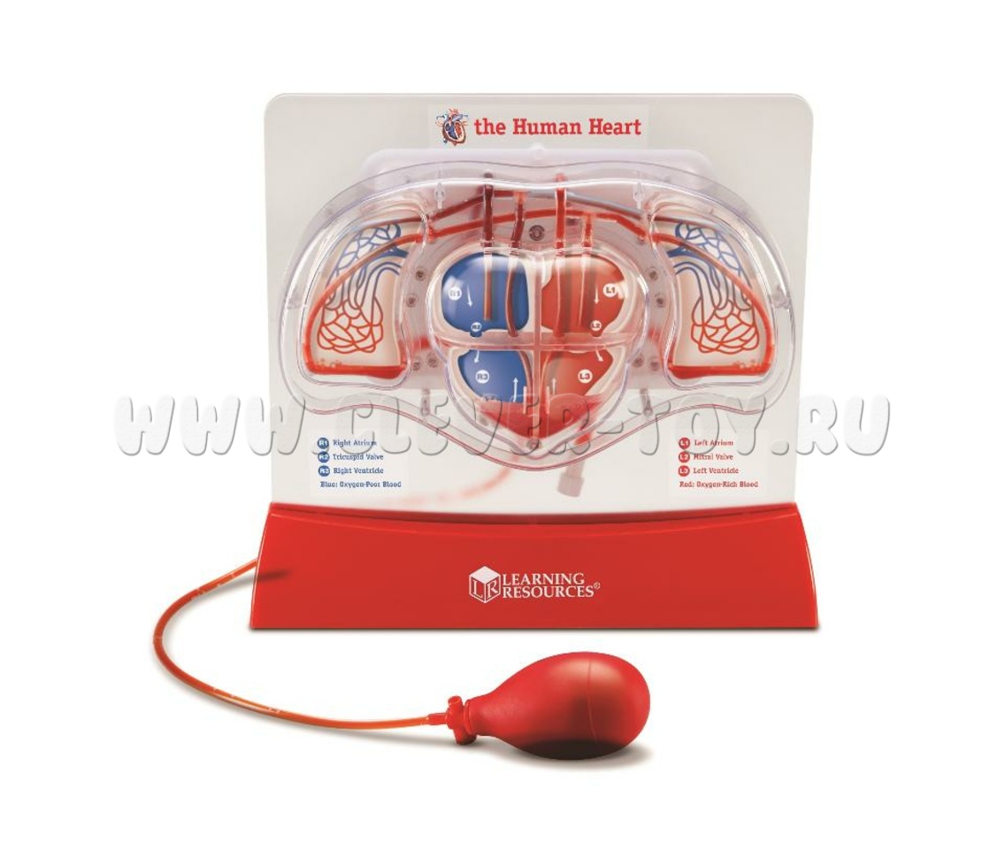 Присутствуют четко обозначенные сердечные камеры, основная артерия, вены и легкие, 10 упаковок красителя и руководство по использованию.