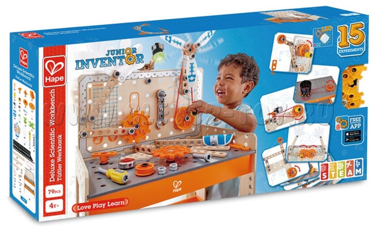 Чтобы помочь маленькому ученому начать работу, компания Hape выпустила приложение «Junior Inventor» с подробными инструкциями и примерами экспериментов.