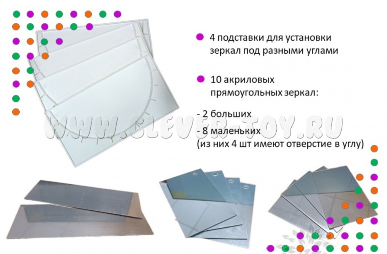 Дети могут видеть какое количество изображений получается, отраженных от объекта при изменении угла наклона зеркал.