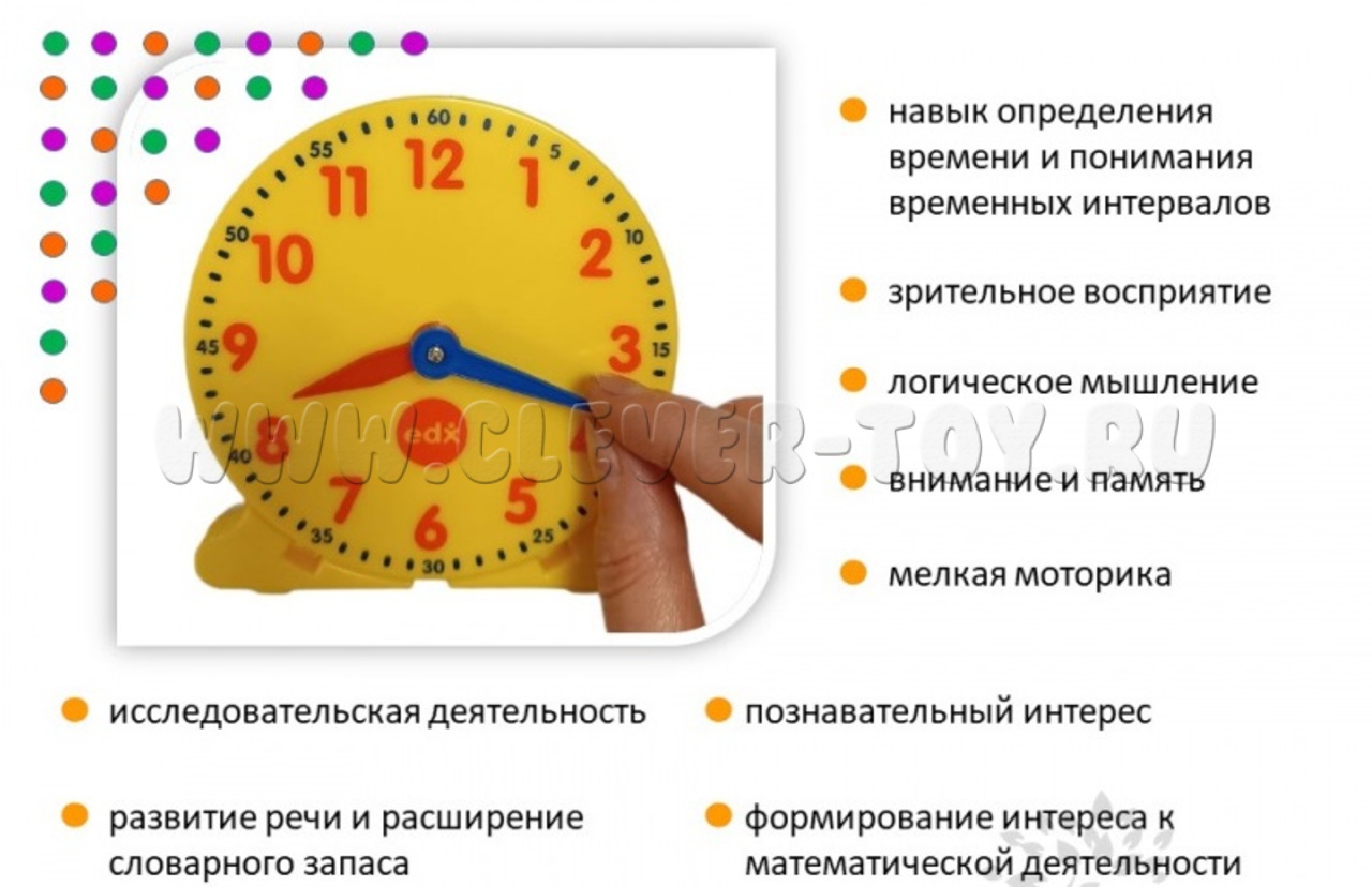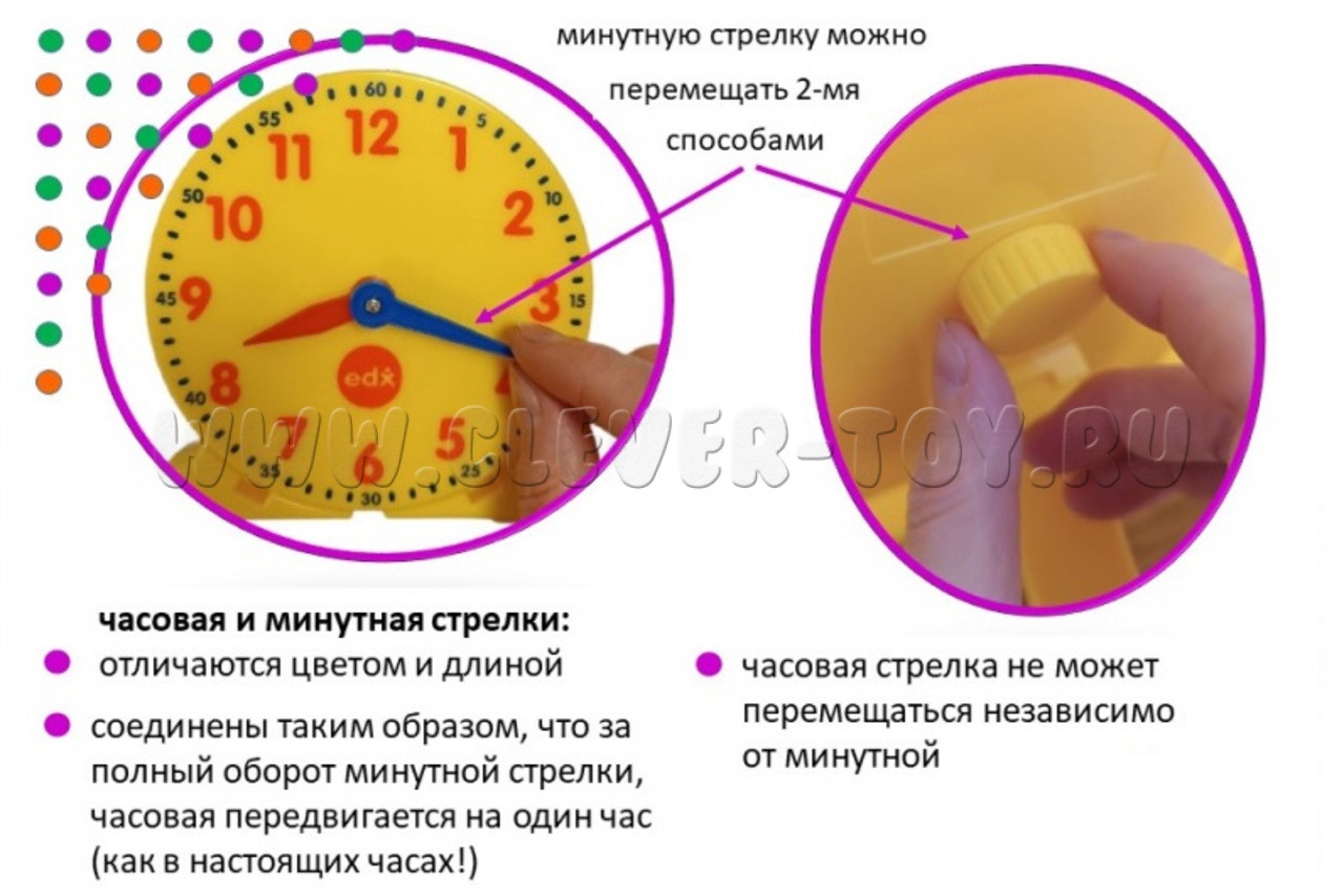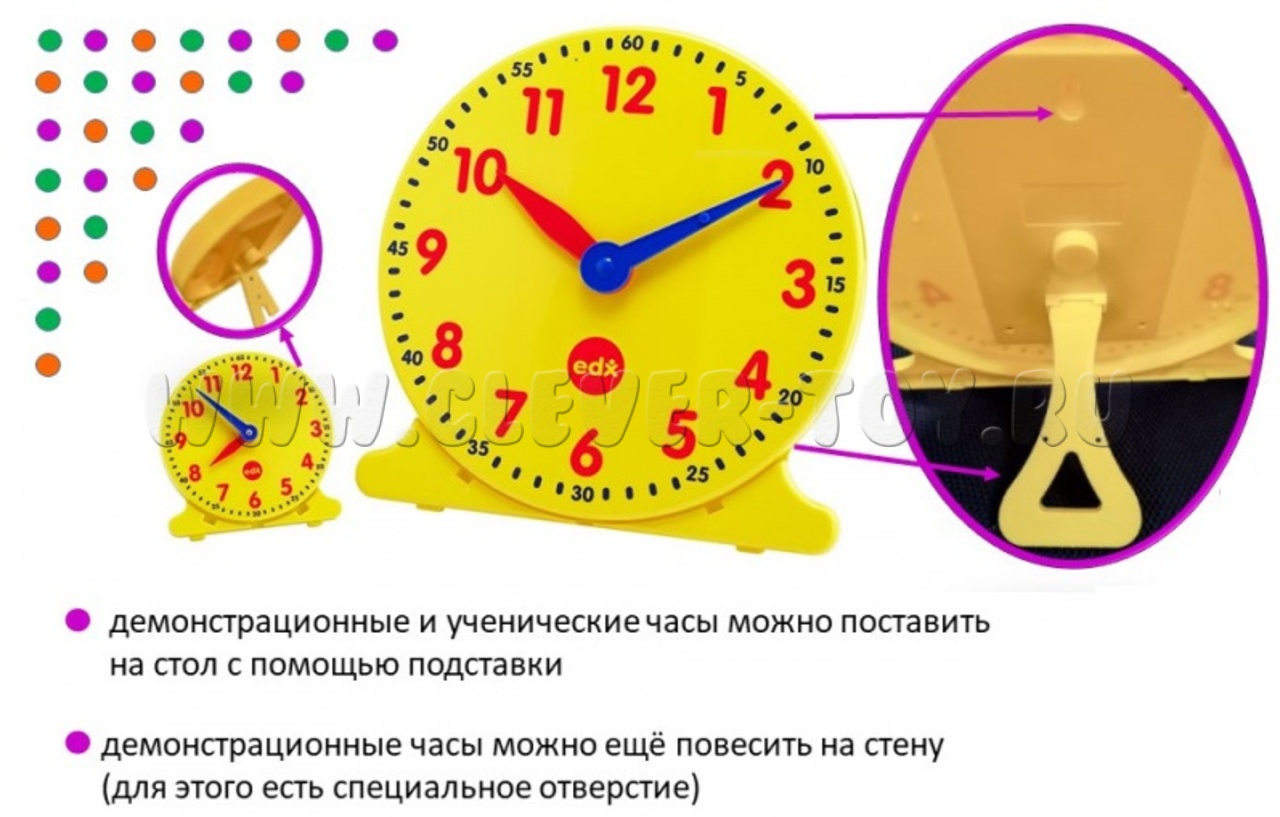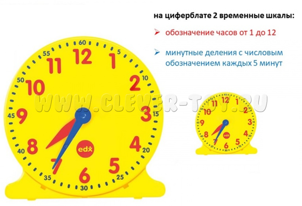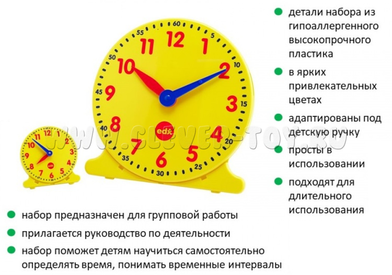 Набор часов (12-ти часовой формат) - поможет детям научиться определять время по часам со стрелками и понимать временные интервалы.