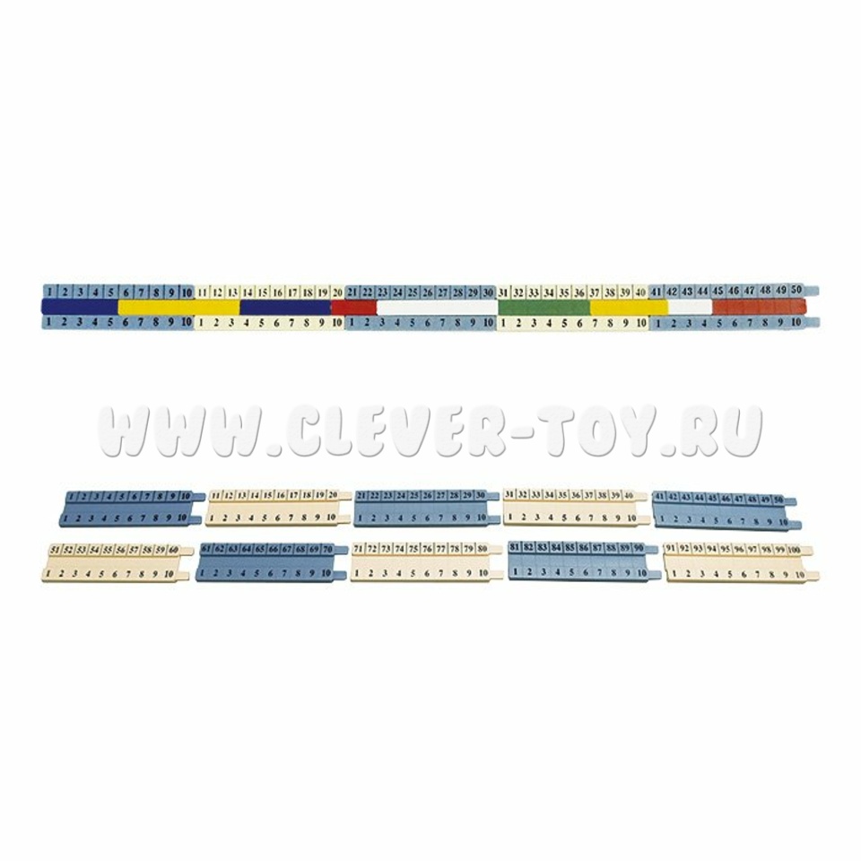 В набор "Занимательная линейка" входит 10 секций линейки с 10 делениями каждая и 50 цветных планок. Данный набор позволяет быстро и в игровой форме научить ребенка складывать и вычитать в пределах 100. Раскрасьте обучение счету яркими красками!