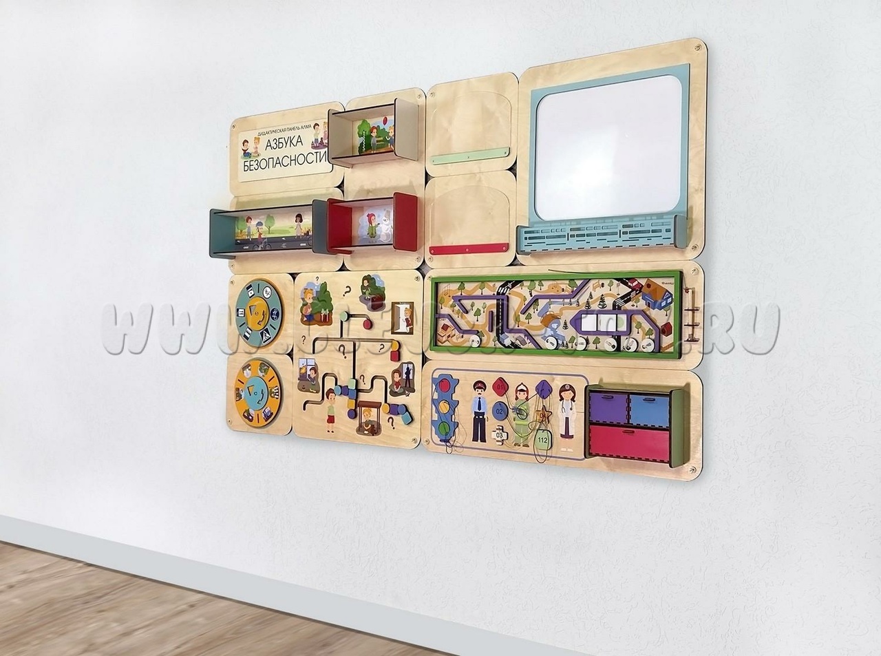 Дидактическая  панель "Азбука безопасности"  помогает детям освоить правила безопасного поведения дома и на улице, развивает логику, мышление, мелкую моторику и цветовосприятие. Все элементы продуманы для увлекательного и полезного обучения.